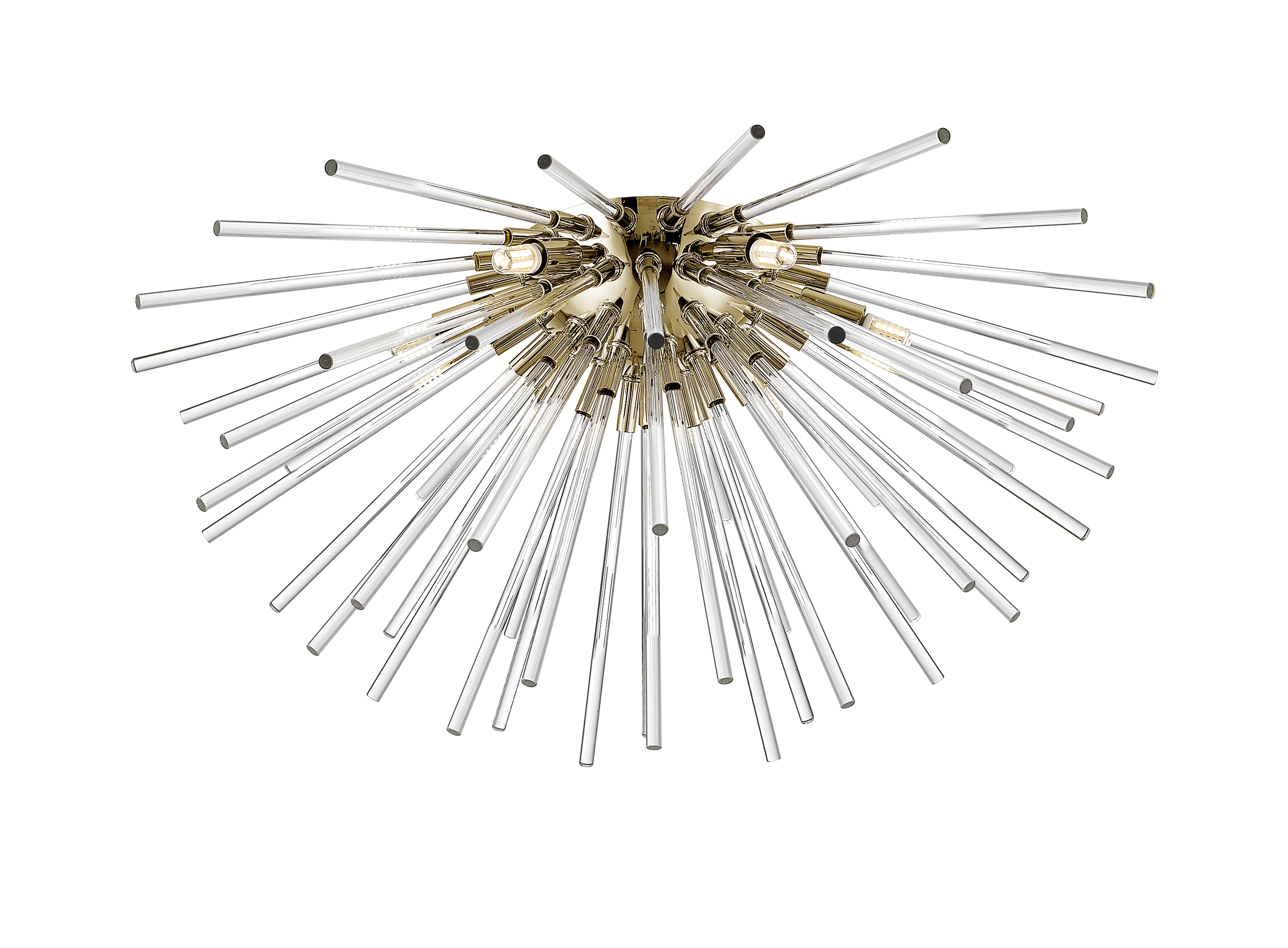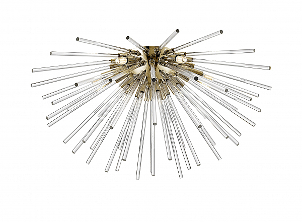 Потолочный светильник из металла цвета золота и стеклянных трубочек. D640mm, H300, 6хG9