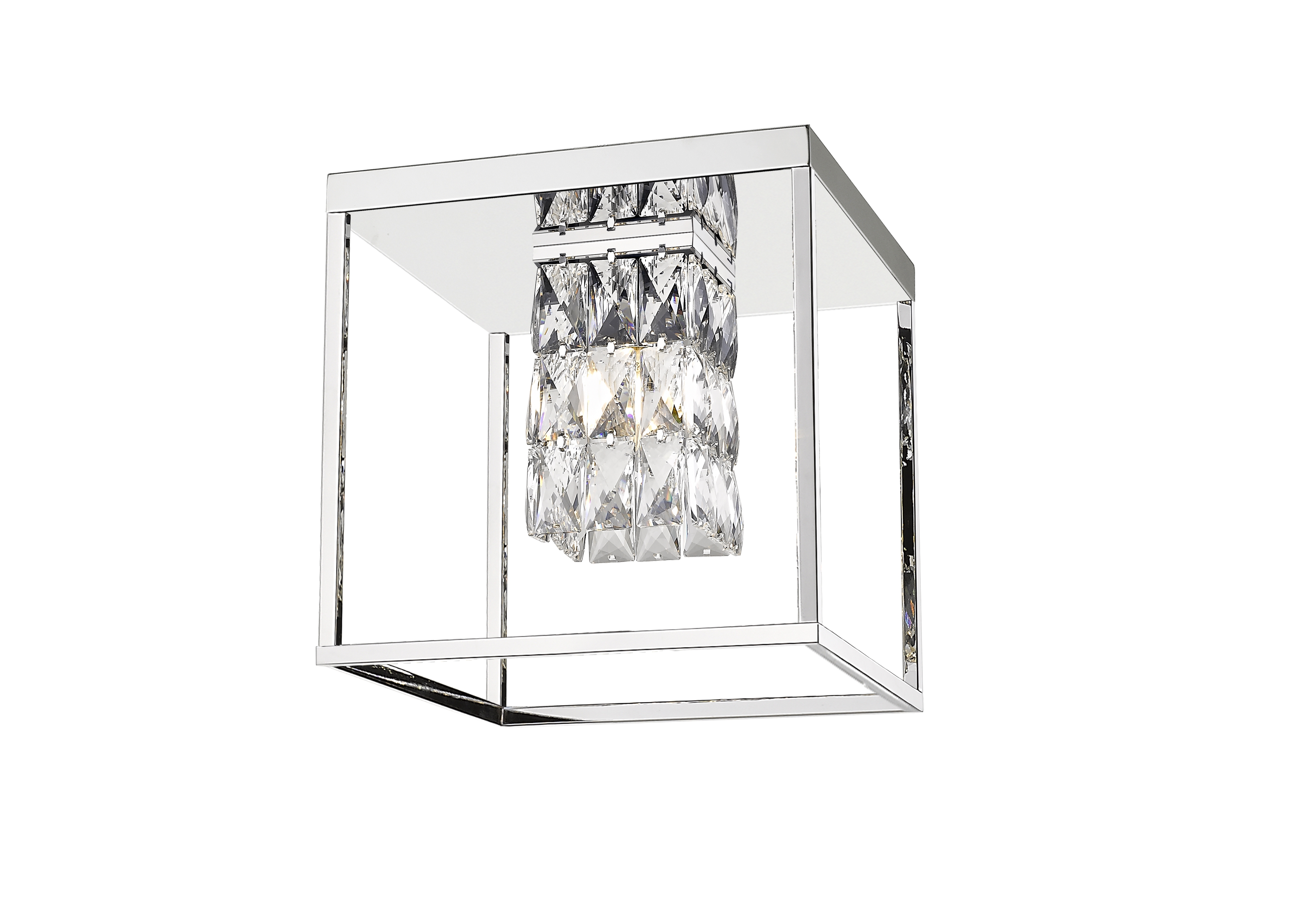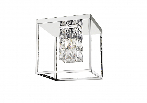 Потолочный светильник из металла цвета хром и прозрачного хрусталя. L300mm, H300mm x W300mm, 1х14