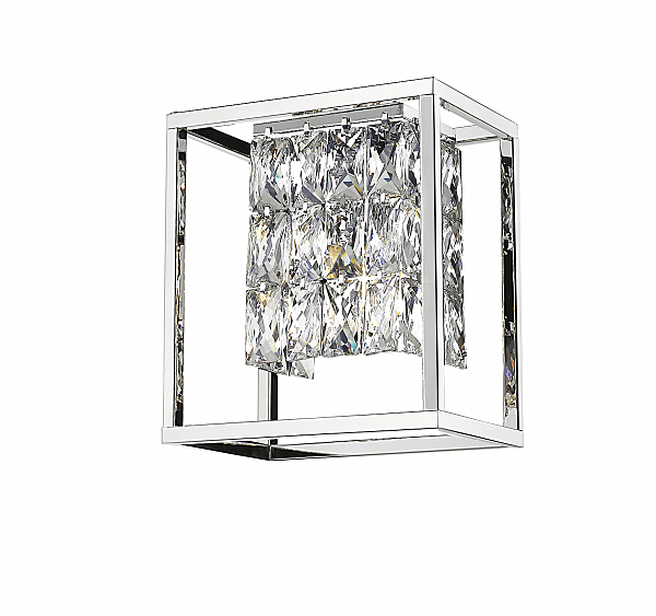 Бра из металла цвета хром и прозрачного хрусталя. H245mm x L245mm x W150mm, 1xE14