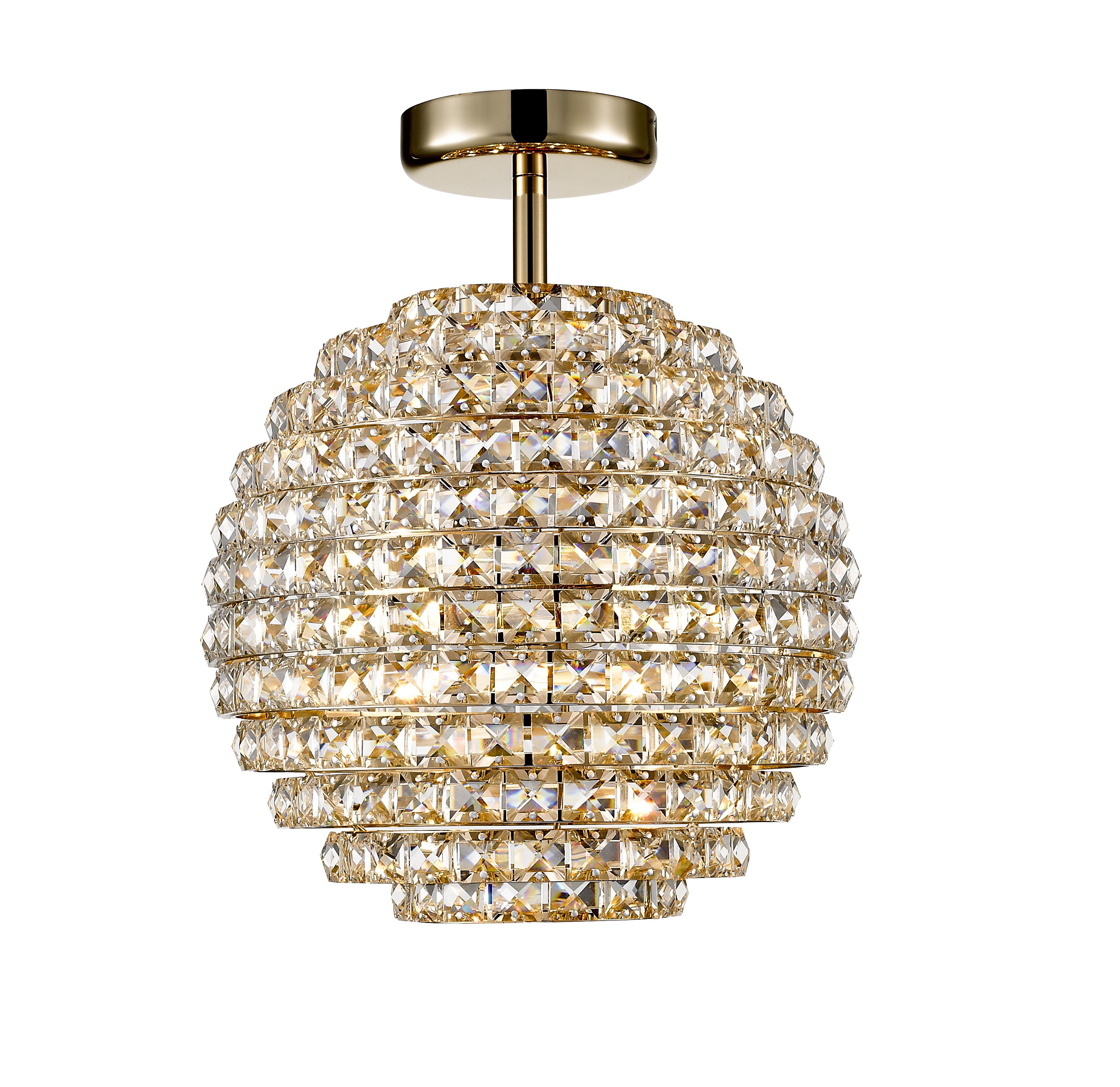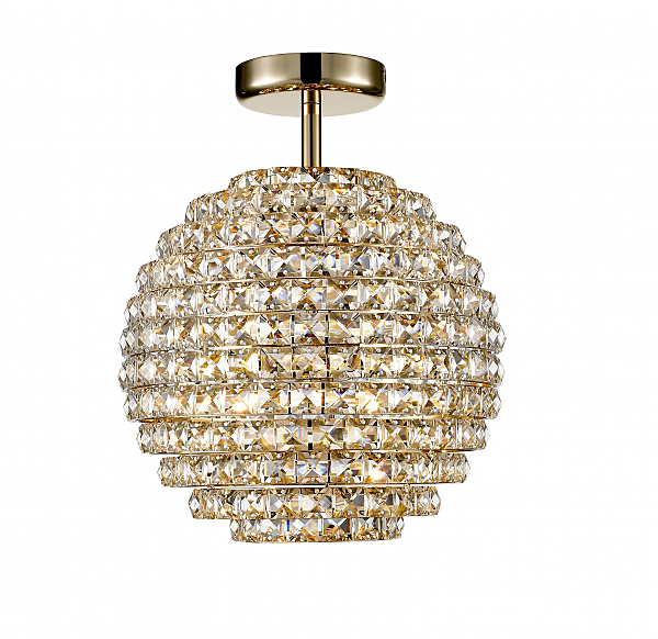 Потолочный светильник в форме шара из металла цвета золото и тонированного хрусталя. D300mm, H360mm, 4xG9