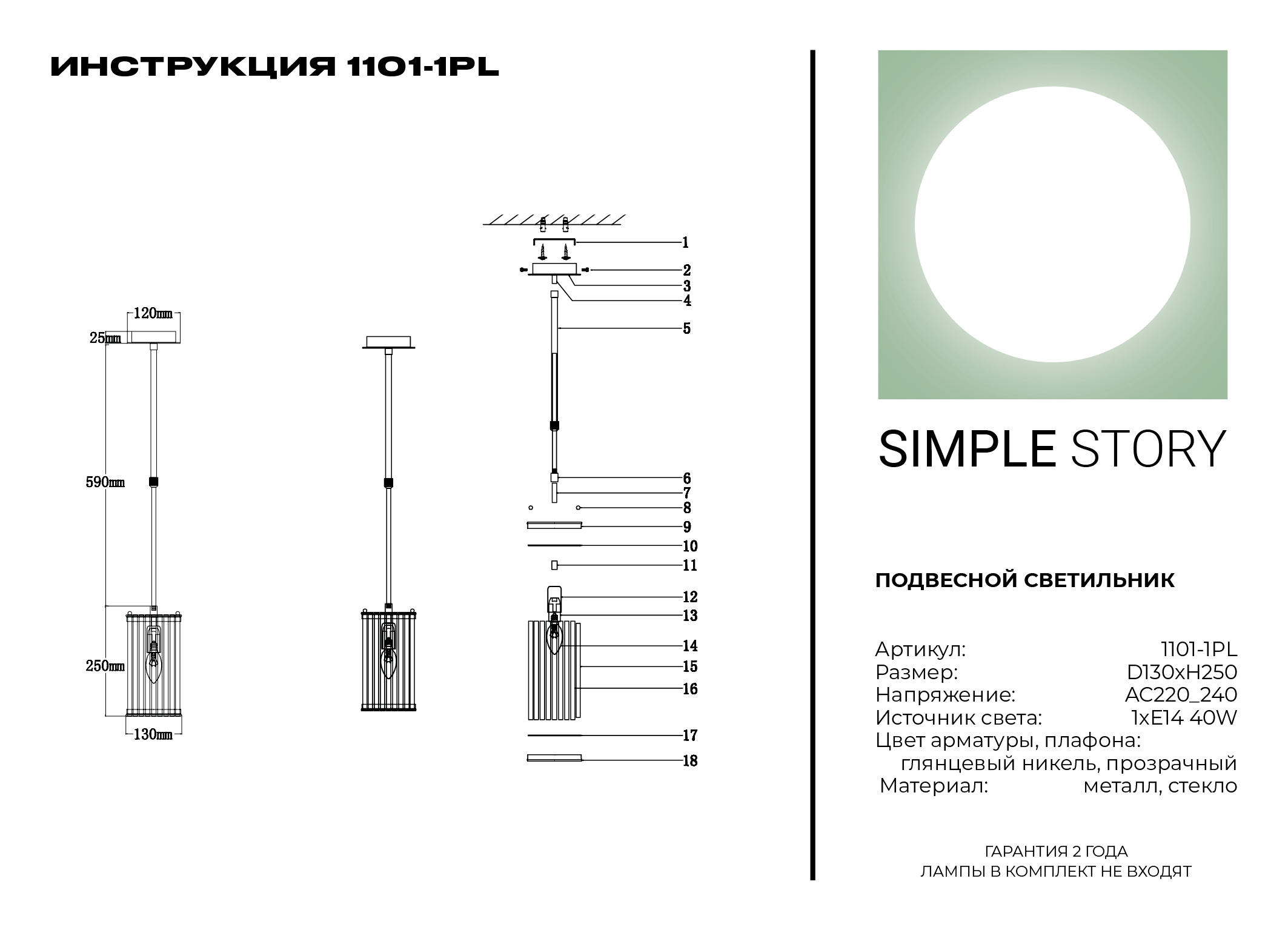 Производитель Simple Light Артикул 1101-1PL Страна