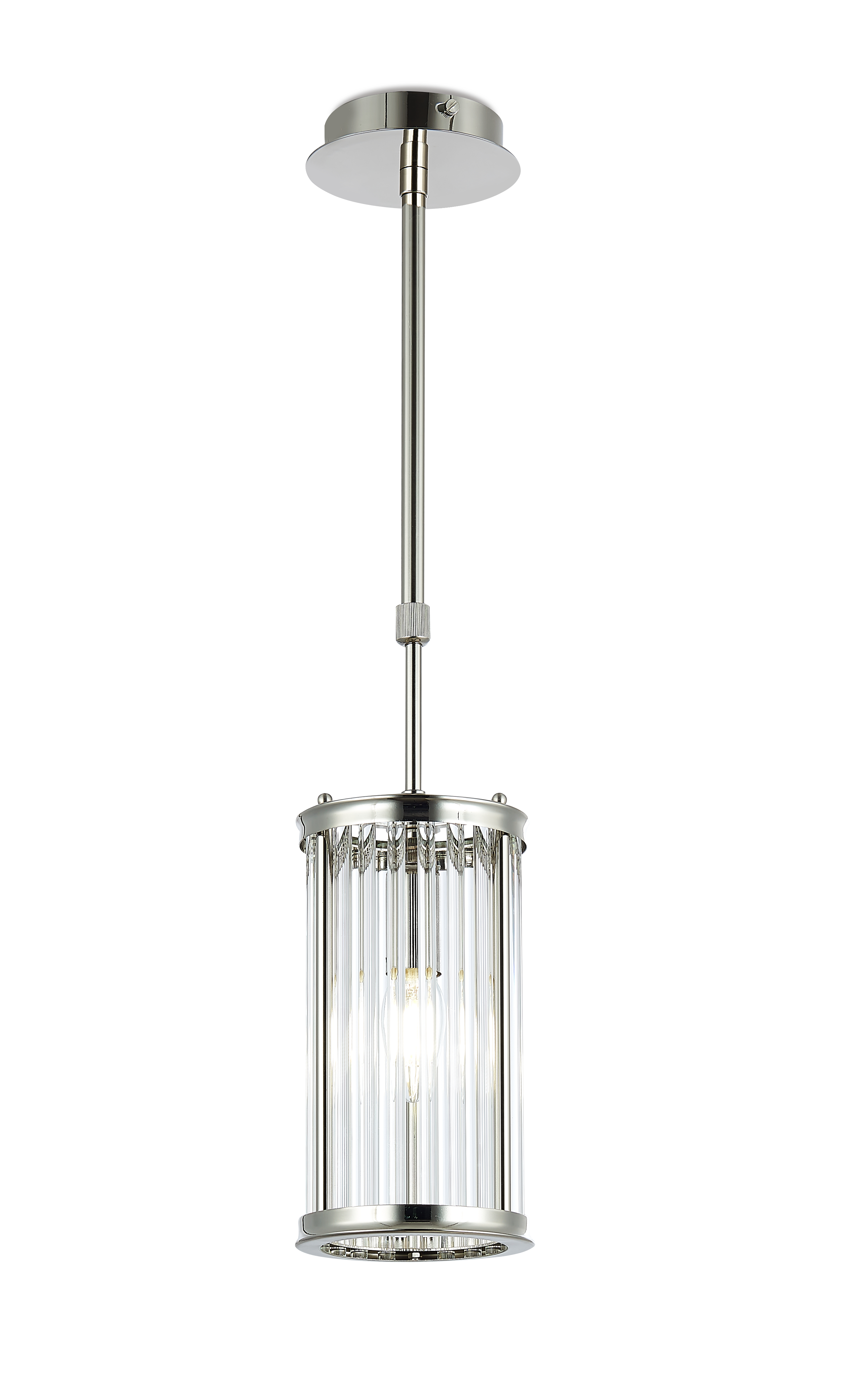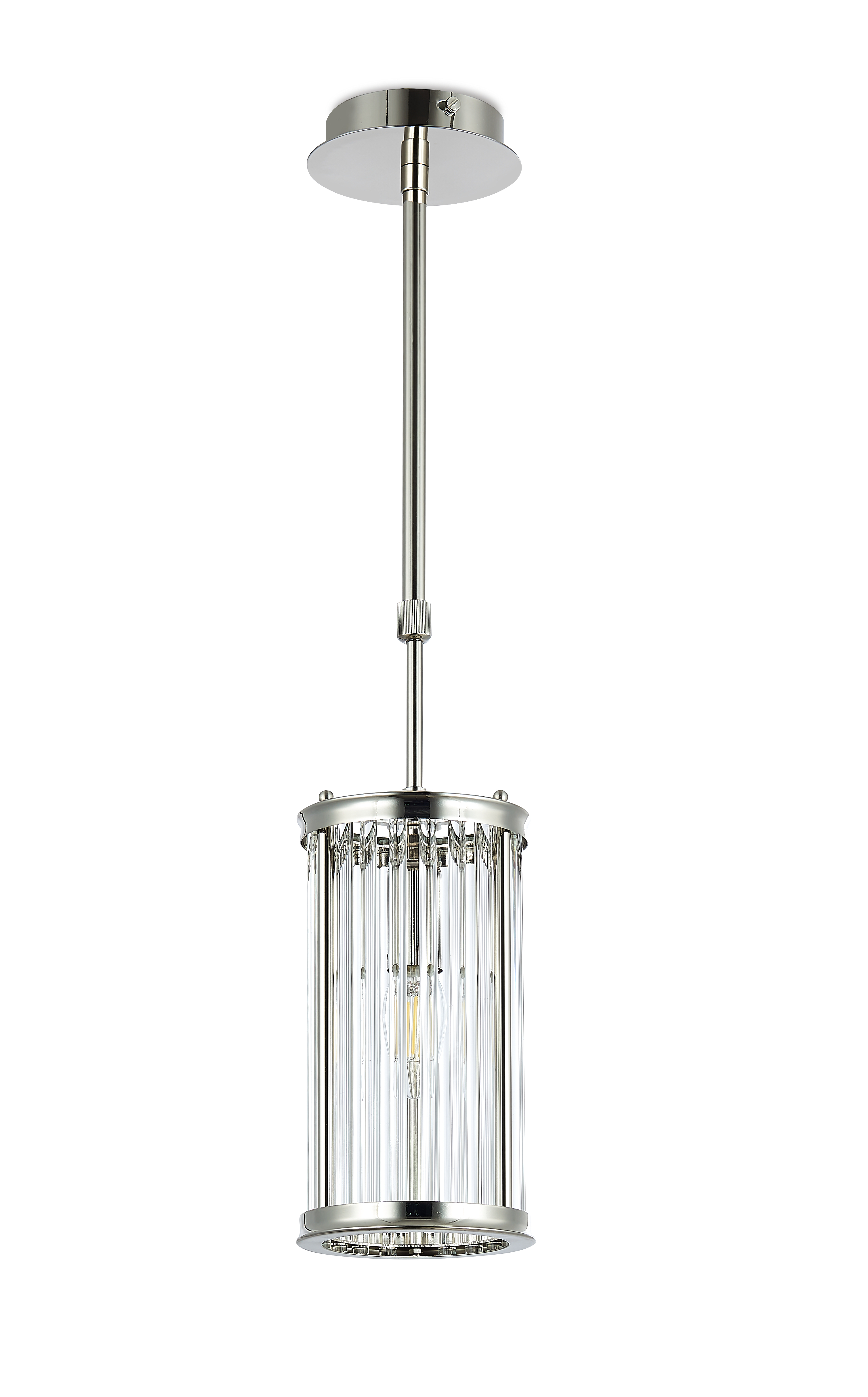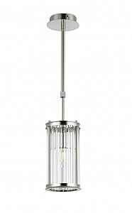 Подвес из тонкого металла цвета глянцевый никель и стеклянных трубочек зафиксированных сверху и снизу.D130mm, H250-775mm, 1хЕ14
