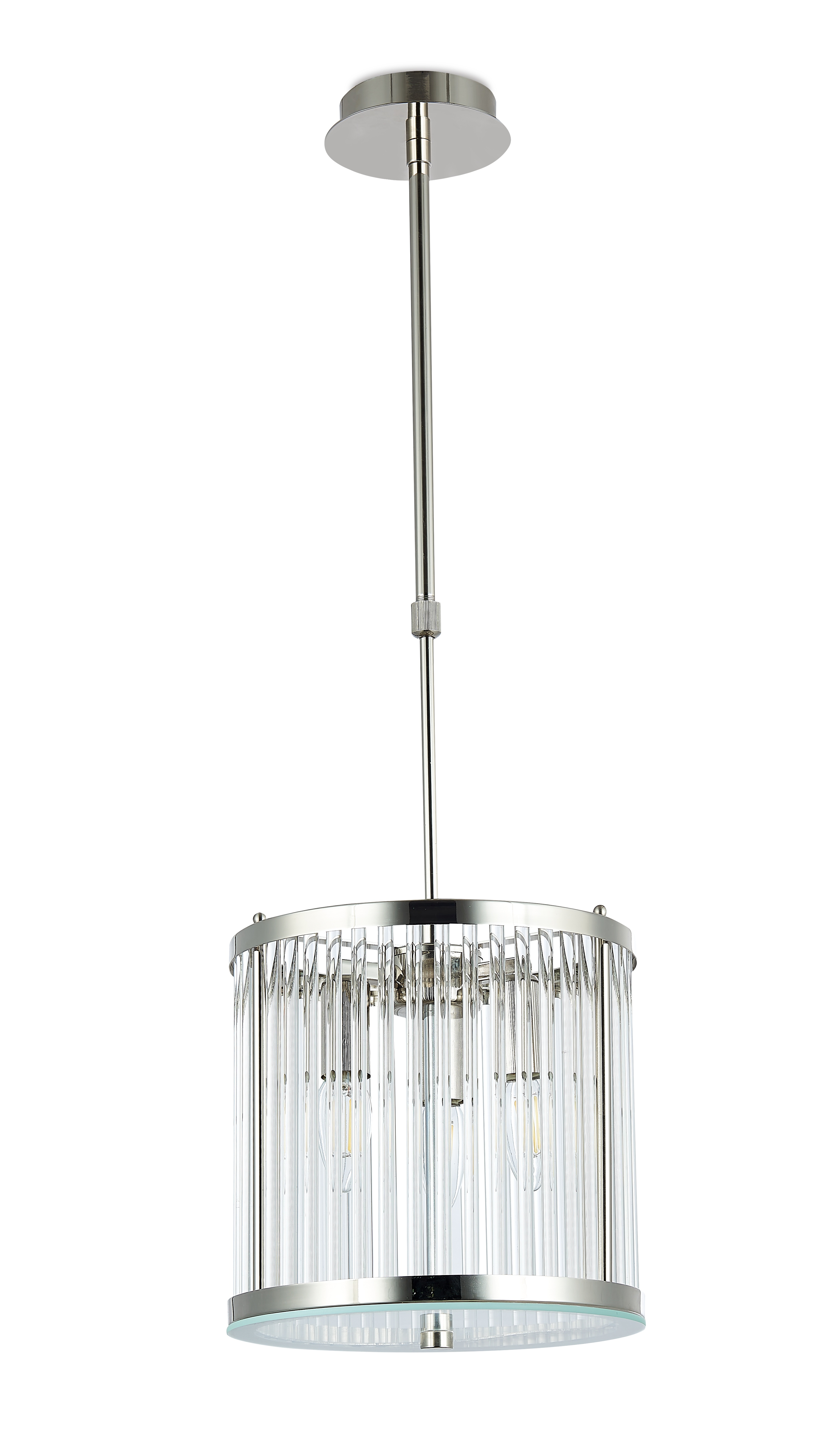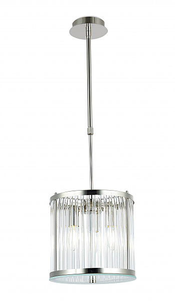 Подвес из тонкого металла цвета глянцевый никель и стеклянных трубочек зафиксированных сверху и снизу.D250mm, H260-785mm, 3хЕ14