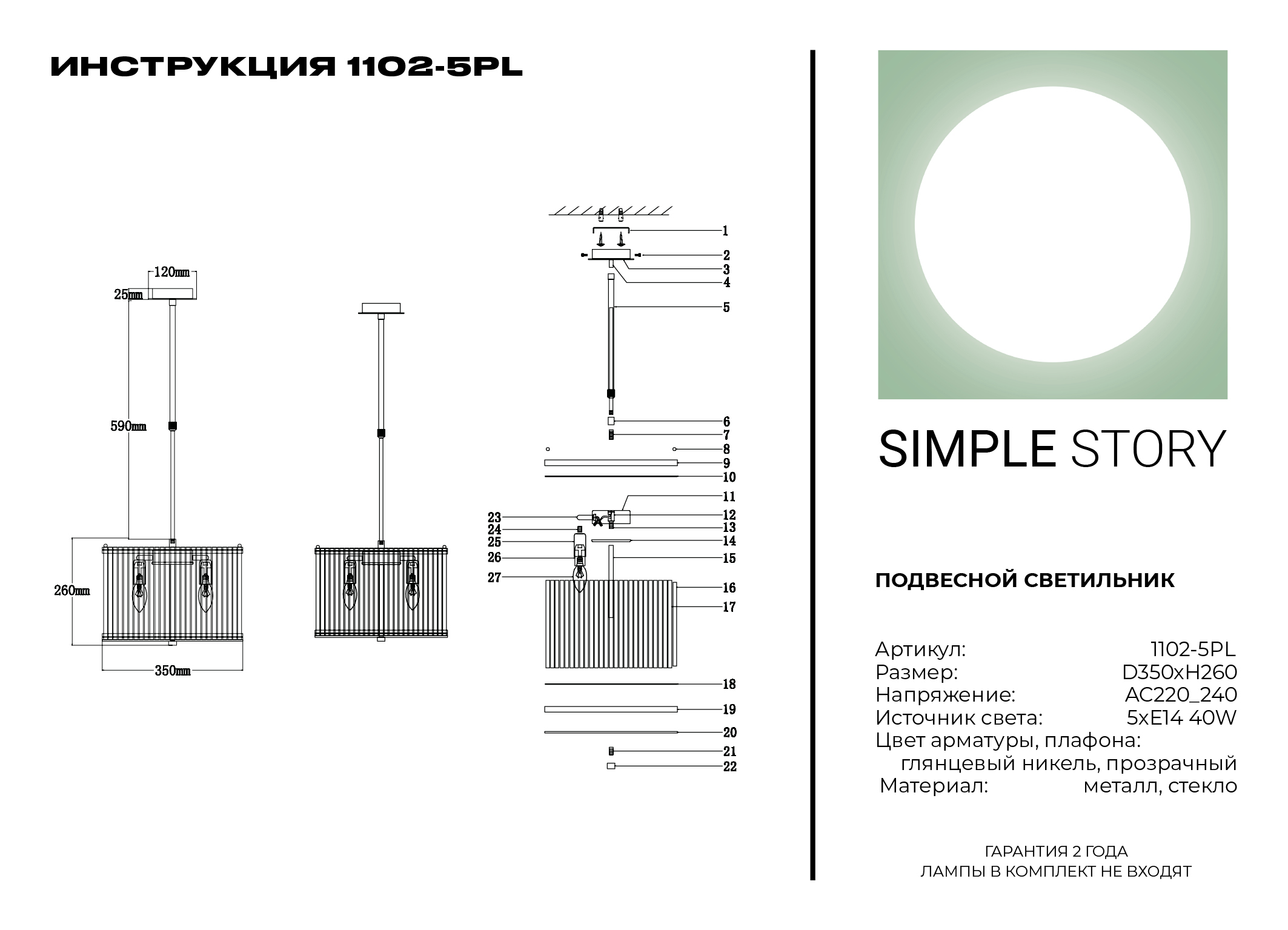 Производитель Simple Light Артикул 1102-5PL Страна
