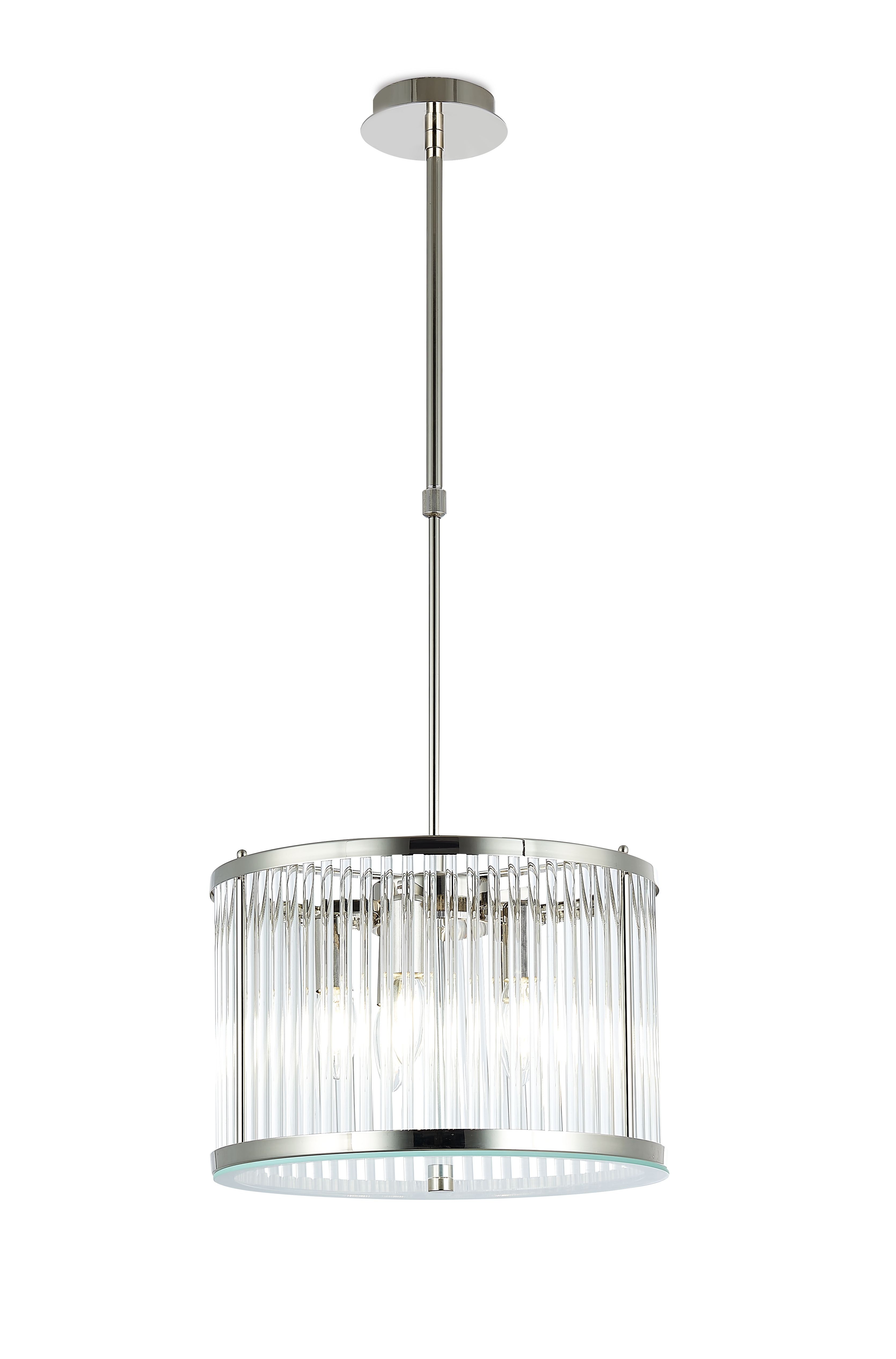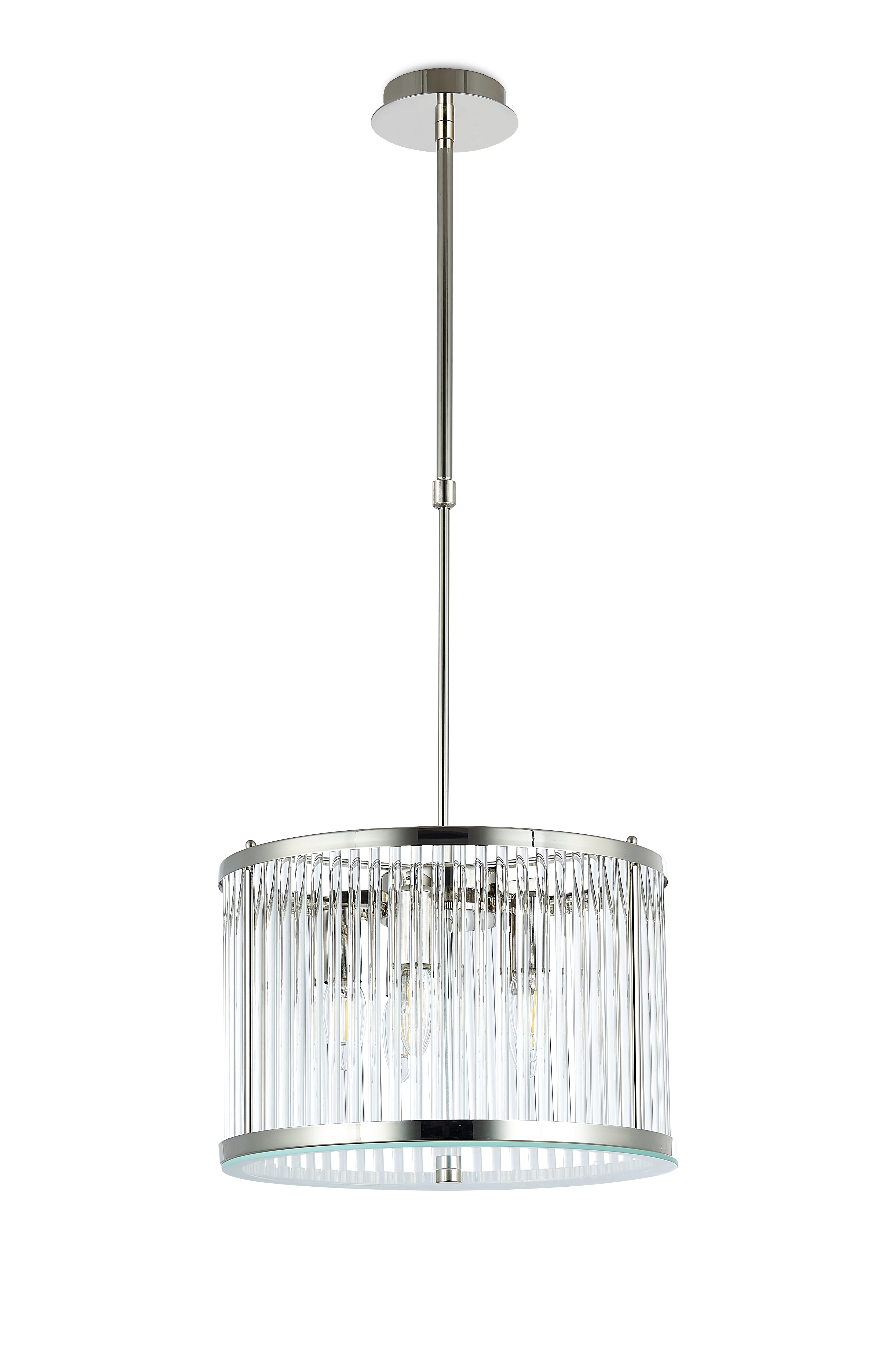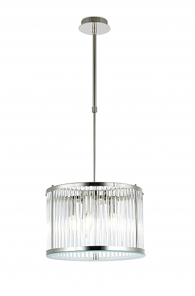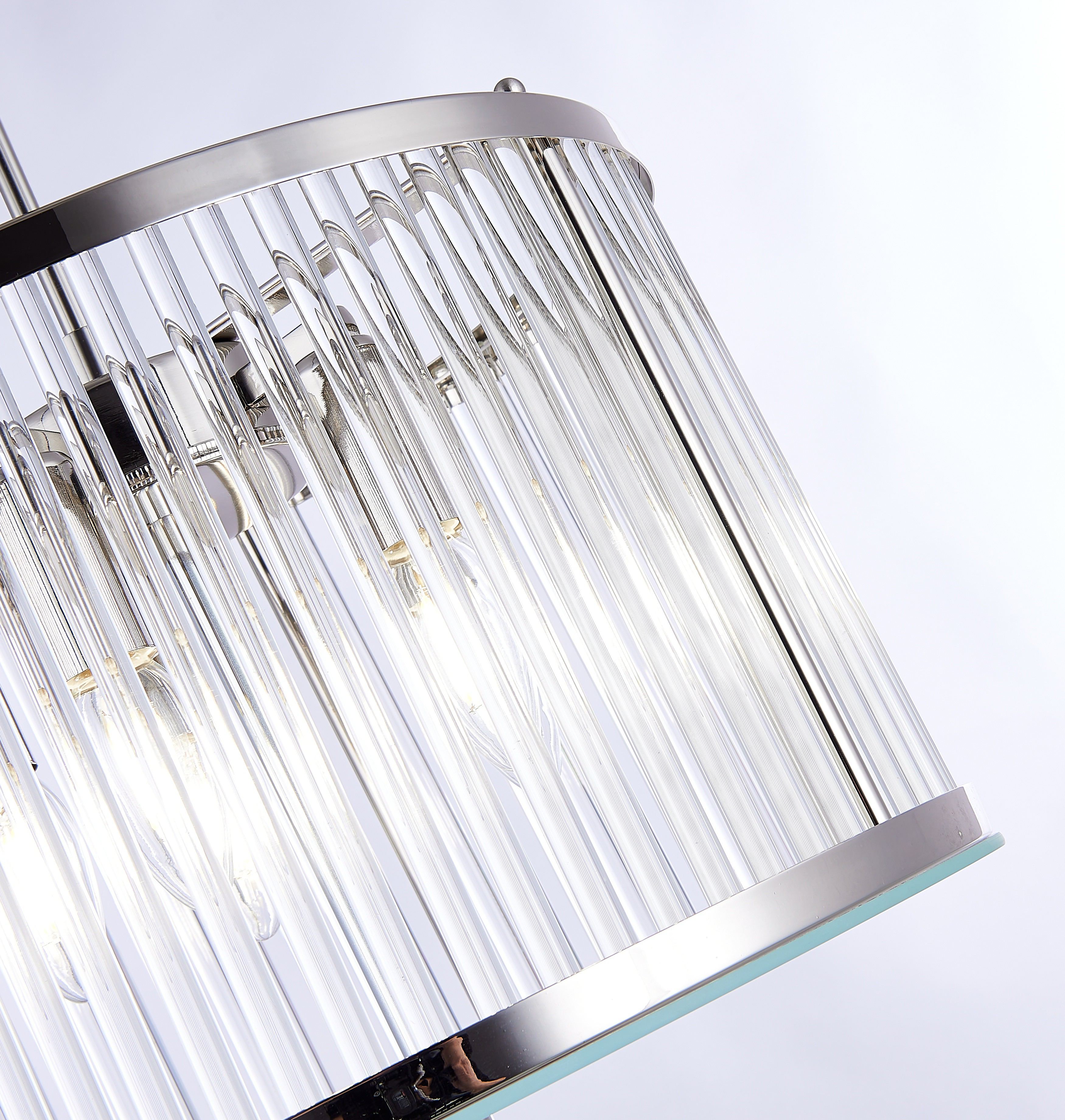 Подвес из тонкого металла цвета глянцевый никель и стеклянных трубочек зафиксированных сверху и снизу.D350mm, H260-785mm, 5хЕ14