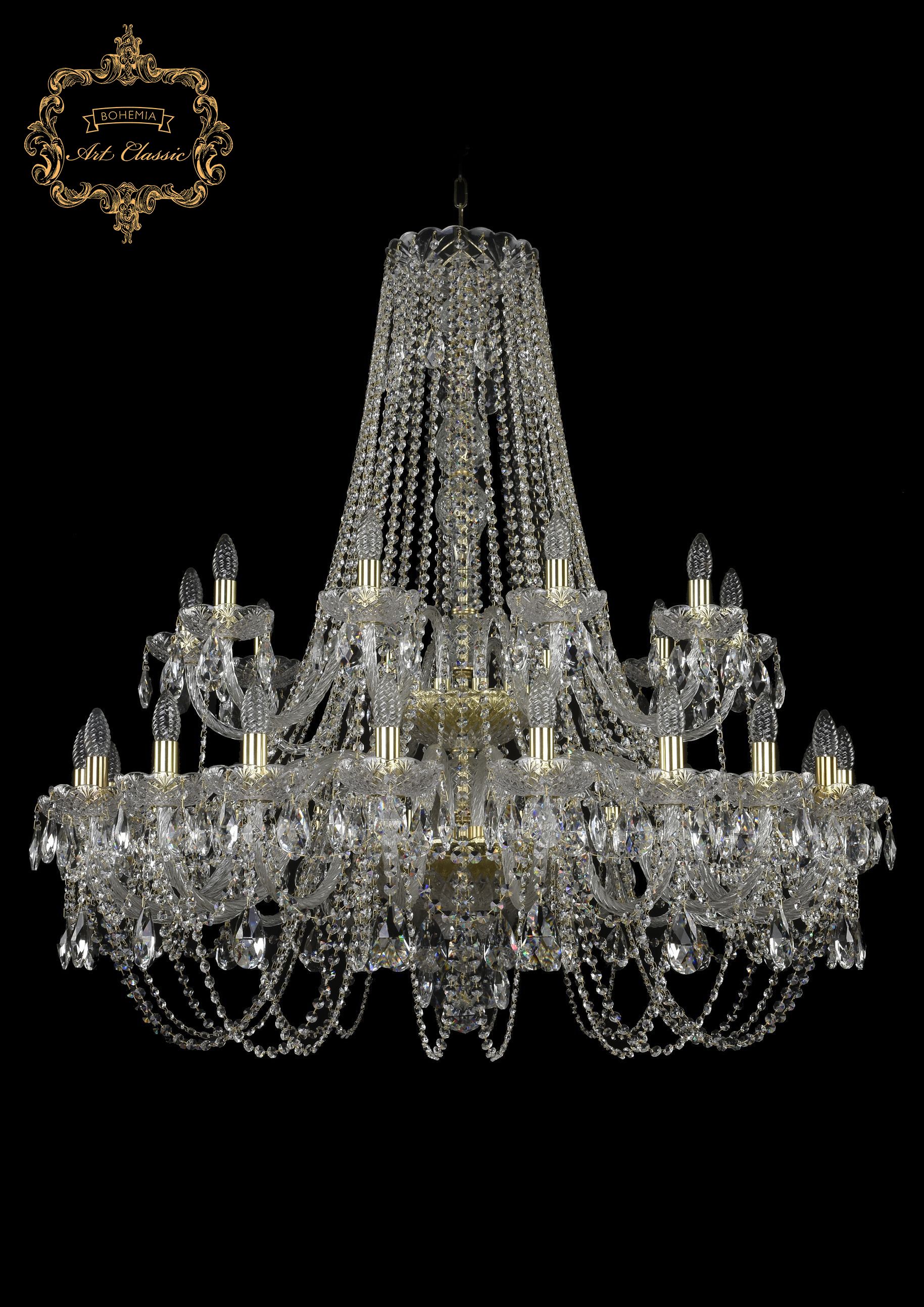 Допускается отличие страны-изготовителя, указанной в характеристиках. Линии производства могут находиться в нескольких государствах. Это не влияет на качество изготовления товара: все заводы данного бренда работают по общим стандартам, а готовые изделия проходят соответствующий контроль.Чехия Коллекция 11.11 ЦветЦвет арматуры Золото Цвет Прозрачный Материал арматуры Металл Цвет декора бесцветный Материал декора Хрусталь РазмерыВысота (мм) 1550 Диаметр (мм) 1180 Ширина (мм) 1180 ЭлектрикаКоличество ламп (шт) 30 Цоколь E14 Тип лампы Накаливания Мощность лампы (Вт) 40 Напряжение (В) 220 Площадь освещения 67 Дополнительная информацияСтепень защиты (IP) IP20 Вес (Кг) 39 Тип подвеса На цепи -
