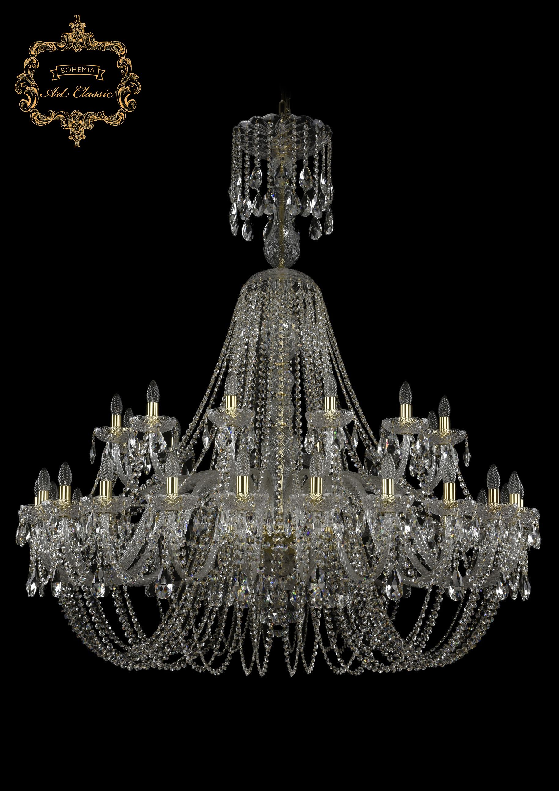 Допускается отличие страны-изготовителя, указанной в характеристиках. Линии производства могут находиться в нескольких государствах. Это не влияет на качество изготовления товара: все заводы данного бренда работают по общим стандартам, а готовые изделия проходят соответствующий контроль.Чехия Коллекция 11.11 ЦветЦвет арматуры Золото Цвет Прозрачный Материал арматуры Металл Цвет декора бесцветный Материал декора Хрусталь РазмерыВысота (мм) 2100 Диаметр (мм) 1500 Ширина (мм) 1500 ЭлектрикаКоличество ламп (шт) 36 Цоколь E14 Тип лампы Накаливания Мощность лампы (Вт) 40 Напряжение (В) 220 Площадь освещения 80 Дополнительная информацияСтепень защиты (IP) IP20 Вес (Кг) 61 Тип подвеса На цепи -