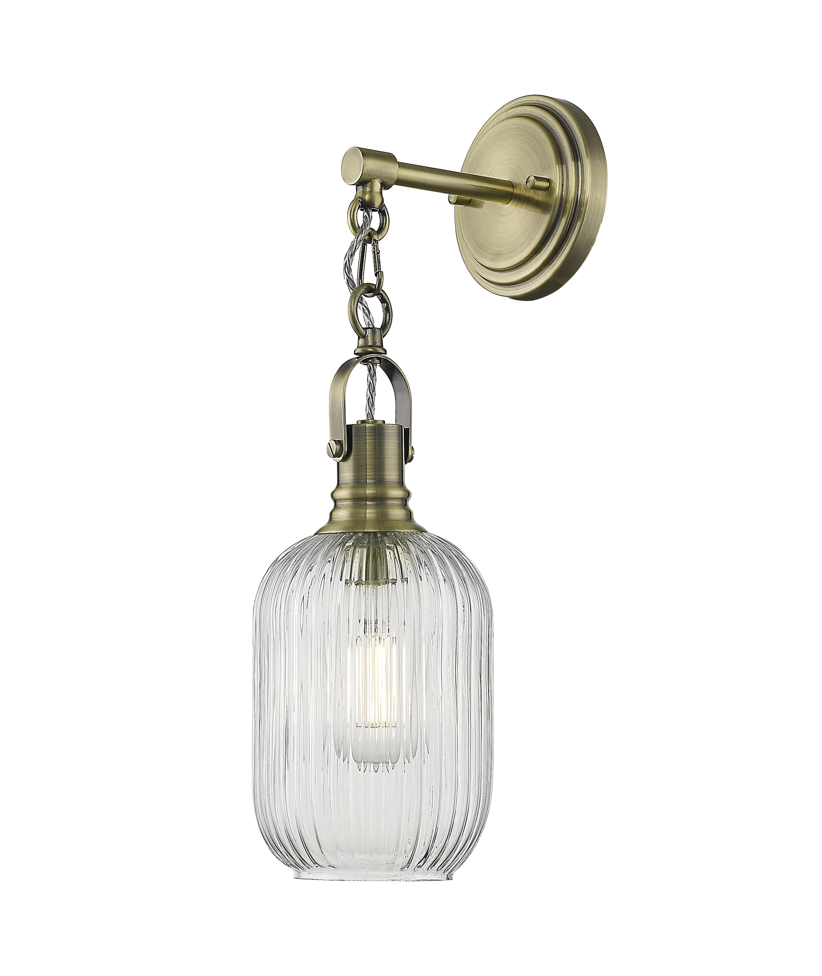 Бра из металла цвета светлой бронзы с плафоном из рифленого прозрачного стекла. H440mm x L140mm x W195mm, 1хE27
