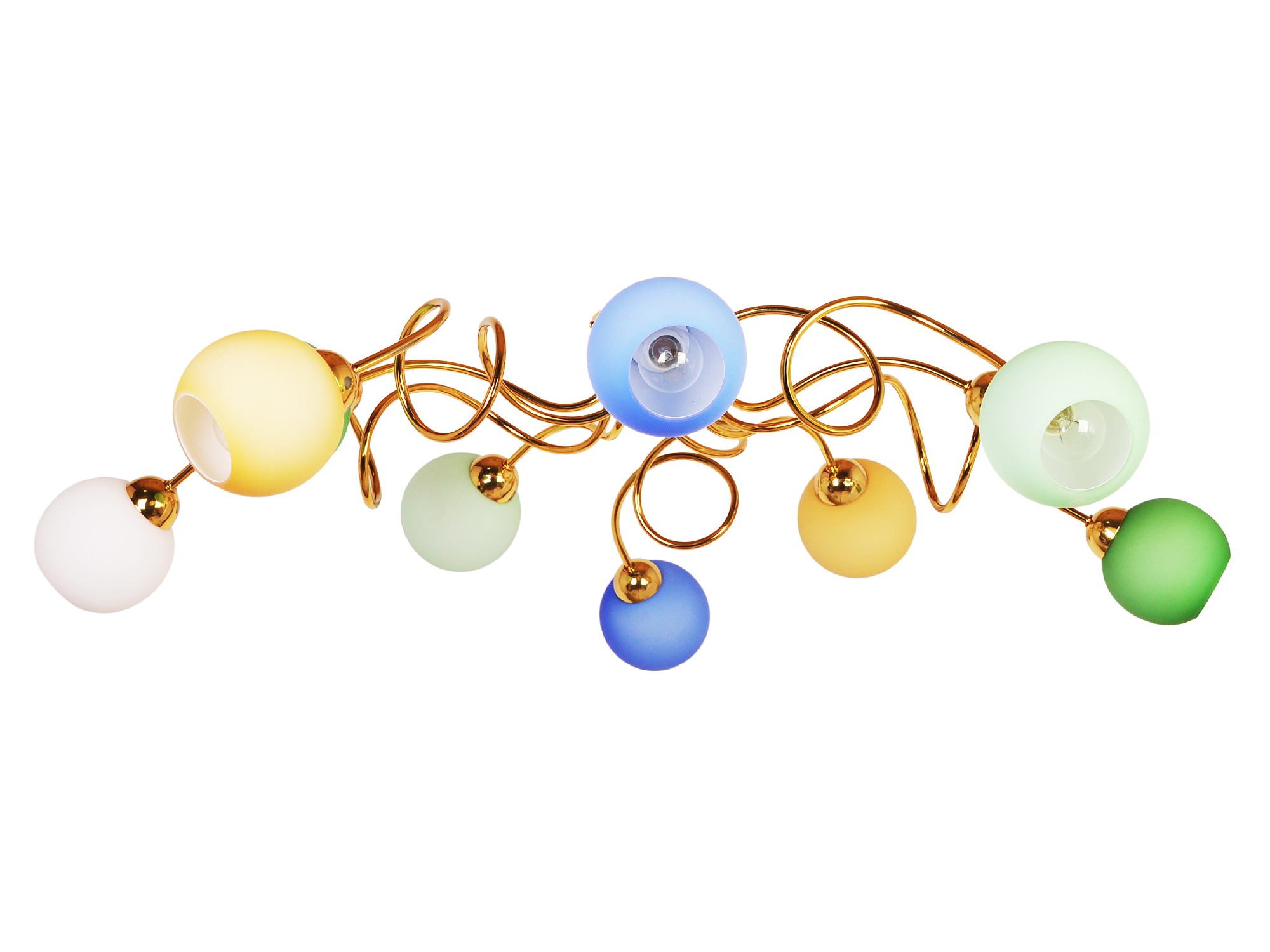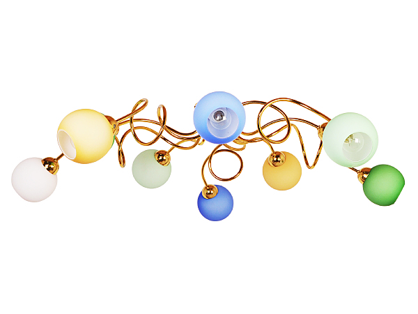 Допускается отличие страны-изготовителя, указанной в характеристиках. Линии производства могут находиться в нескольких государствах. Это не влияет на качество изготовления товара: все заводы данного бренда работают по общим стандартам, а готовые изделия проходят соответствующий контроль.Италия ЦветЦвет арматуры Золото Цвет Разноцветные Материал арматуры Металл Материал плафона Стекло РазмерыВысота (мм) 260 Диаметр (мм) 1000 Ширина (мм) 1000 ЭлектрикаКоличество ламп (шт) 10 Цоколь E14 Тип лампы Светодиодная, Накаливания Мощность лампы (Вт) 40 Напряжение (В) 220 Площадь освещения 25 Дополнительная информацияСпособ крепления Планка Степень защиты (IP) IP20 Вес (Кг) 5,8 -