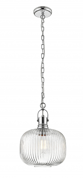 Подвес из металла цвета хром с плафоном из рифленого прозрачного стекла. D250mm, H490-1870mm 1хE27