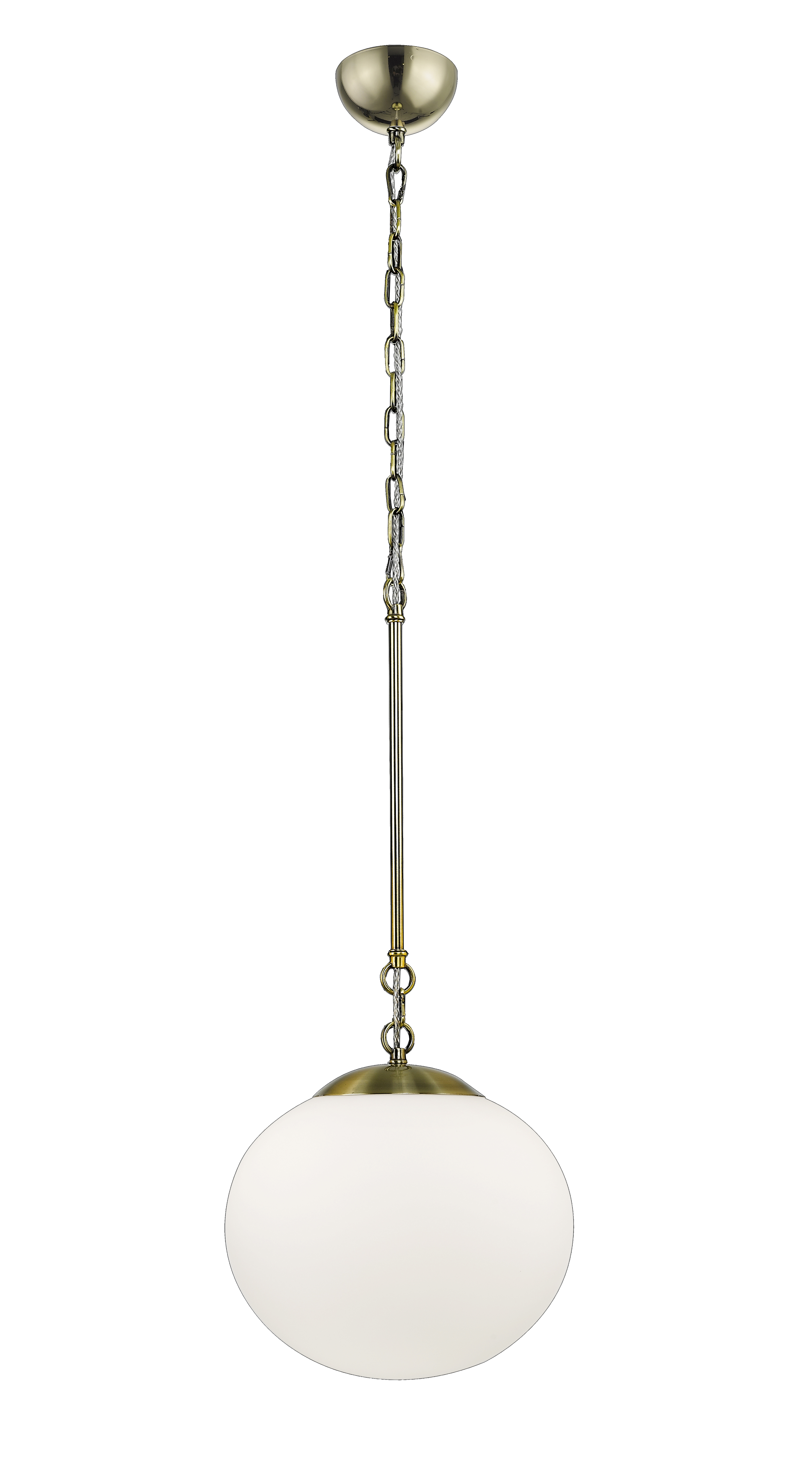 Подвес из металла цвета светлой бронзы с плафоном из матового стекла. D320mm, H860-1870mm 1хE27