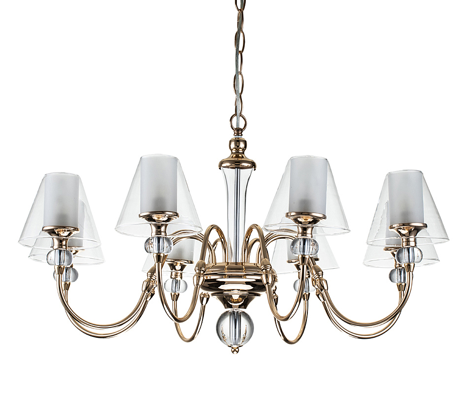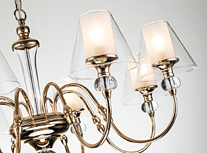 Допускается отличие страны-изготовителя, указанной в характеристиках. Линии производства могут находиться в нескольких государствах. Это не влияет на качество изготовления товара: все заводы данного бренда работают по общим стандартам, а готовые изделия проходят соответствующий контроль.Великобритания Коллекция Lyra ЦветЦвет арматуры Золото Цвет Золото Материал арматуры Металл, Хрусталь Цвет плафона прозрачный, матовый Материал плафона Стекло РазмерыВысота (мм) 1040 Длина (мм) 815 Ширина (мм) 815 Диаметр абажура-плафона 145 Высота абажура-плафона 120 ЭлектрикаКоличество ламп (шт) 8 Цоколь E14 Мощность лампы (Вт) 40 Напряжение (В) 220 Площадь освещения 20 Дополнительная информацияСпособ крепления Крюк Степень защиты (IP) IP20 Вес (Кг) 5.55 Тип подвеса На цепи -