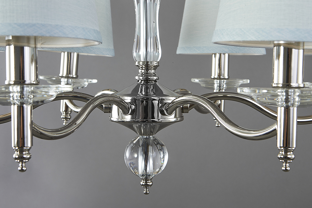 Допускается отличие страны-изготовителя, указанной в характеристиках. Линии производства могут находиться в нескольких государствах. Это не влияет на качество изготовления товара: все заводы данного бренда работают по общим стандартам, а готовые изделия проходят соответствующий контроль.Великобритания Коллекция Sheffield ЦветЦвет арматуры Никель Цвет Никель Материал арматуры Металл Цвет декора прозрачный Цвет плафона Серый Материал декора Кристаллы Материал плафона Ткань РазмерыВысота (мм) 1450 Длина (мм) 690 Высота минимальная (мм) 500 Ширина (мм) 690 Диаметр абажура-плафона 155 Высота абажура-плафона 140 ЭлектрикаКоличество ламп (шт) 6 Цоколь E14 Мощность лампы (Вт) 40 Напряжение (В) 220 Площадь освещения 12 Дополнительная информацияСпособ крепления Крюк Степень защиты (IP) IP20 Вес (Кг) 5.5 Тип подвеса На цепи -