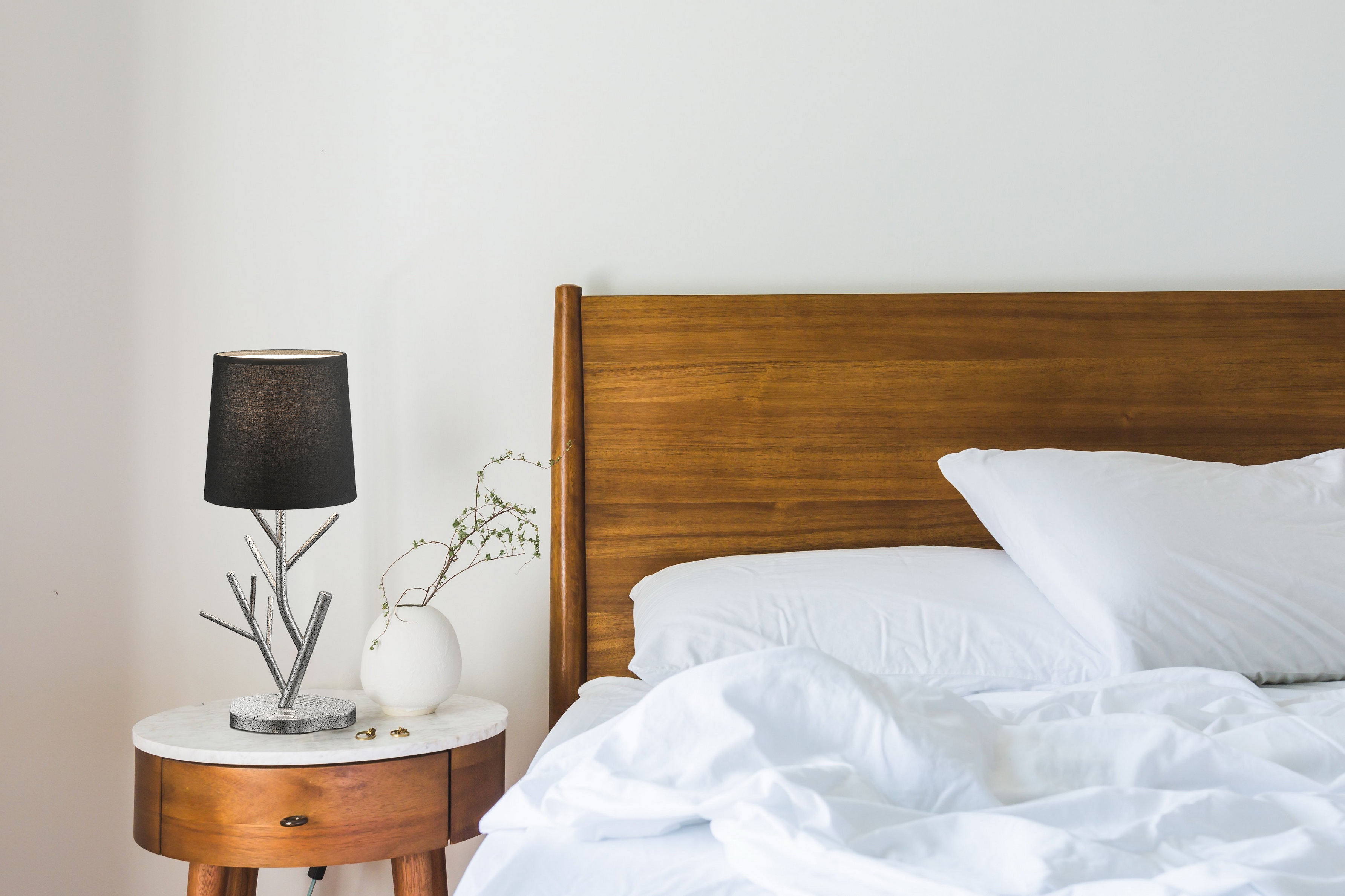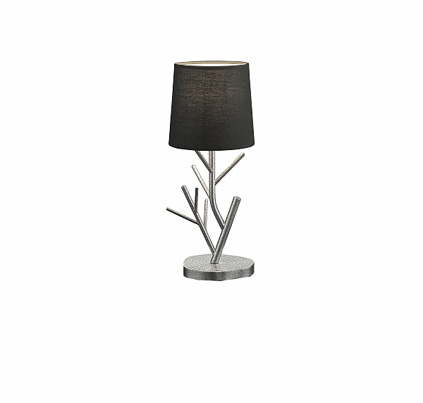 Настольная лампа из металла серебряного цвета с текстильным черным абажуром (ткань на ПВХ). D180mm, H460mm. 1ХЕ14