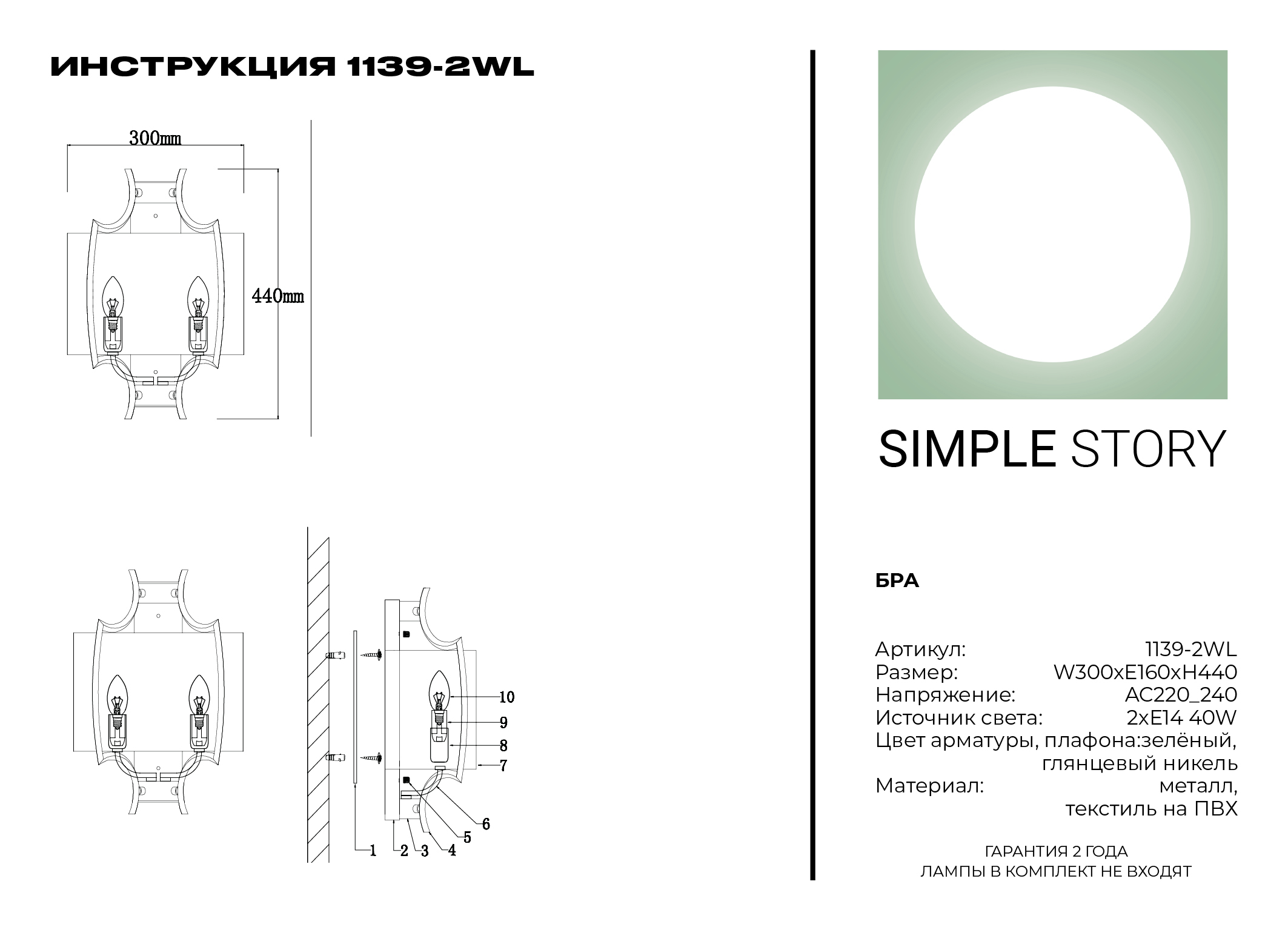 Производитель Simple Light Артикул 1139-2WL Страна