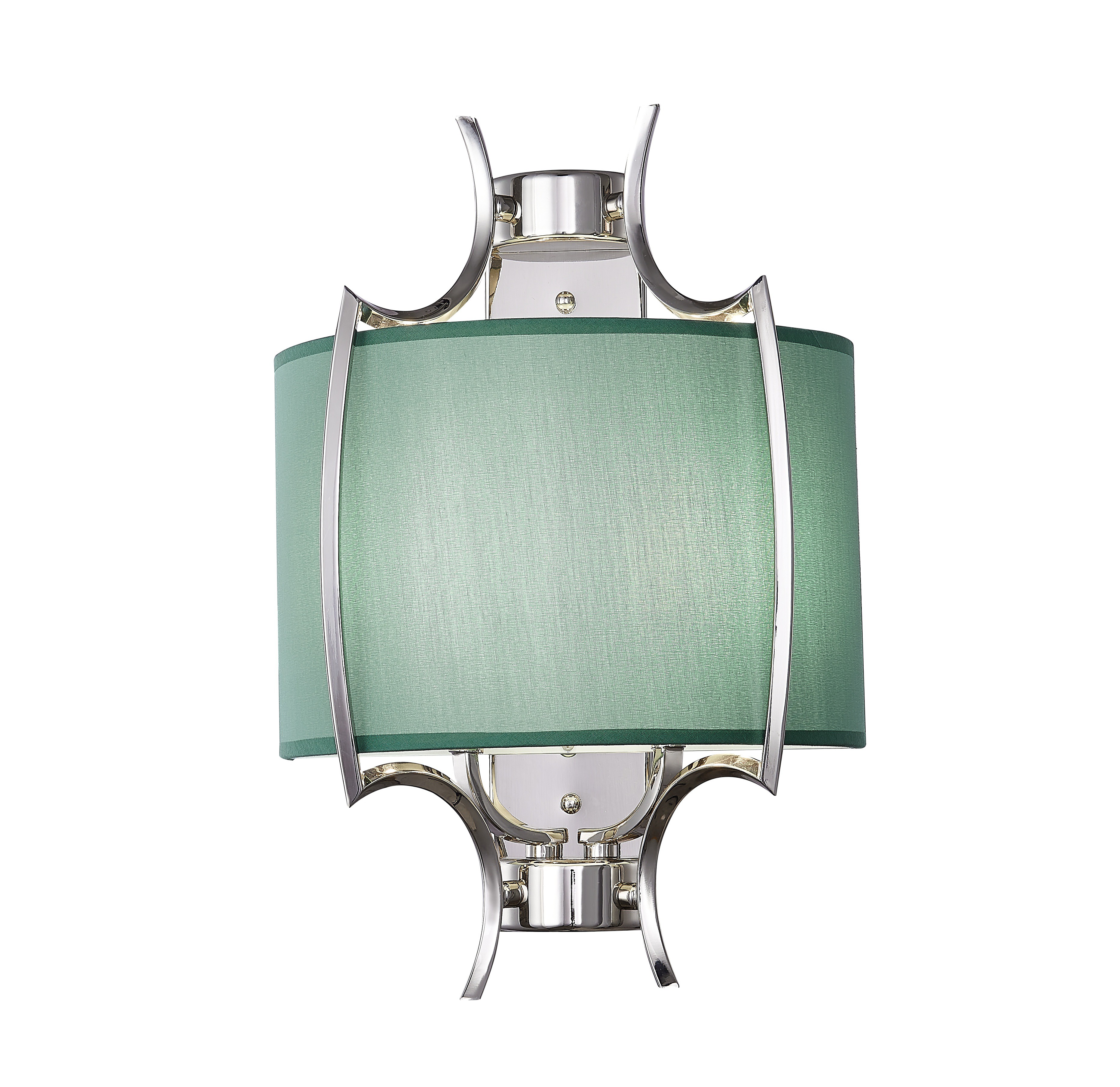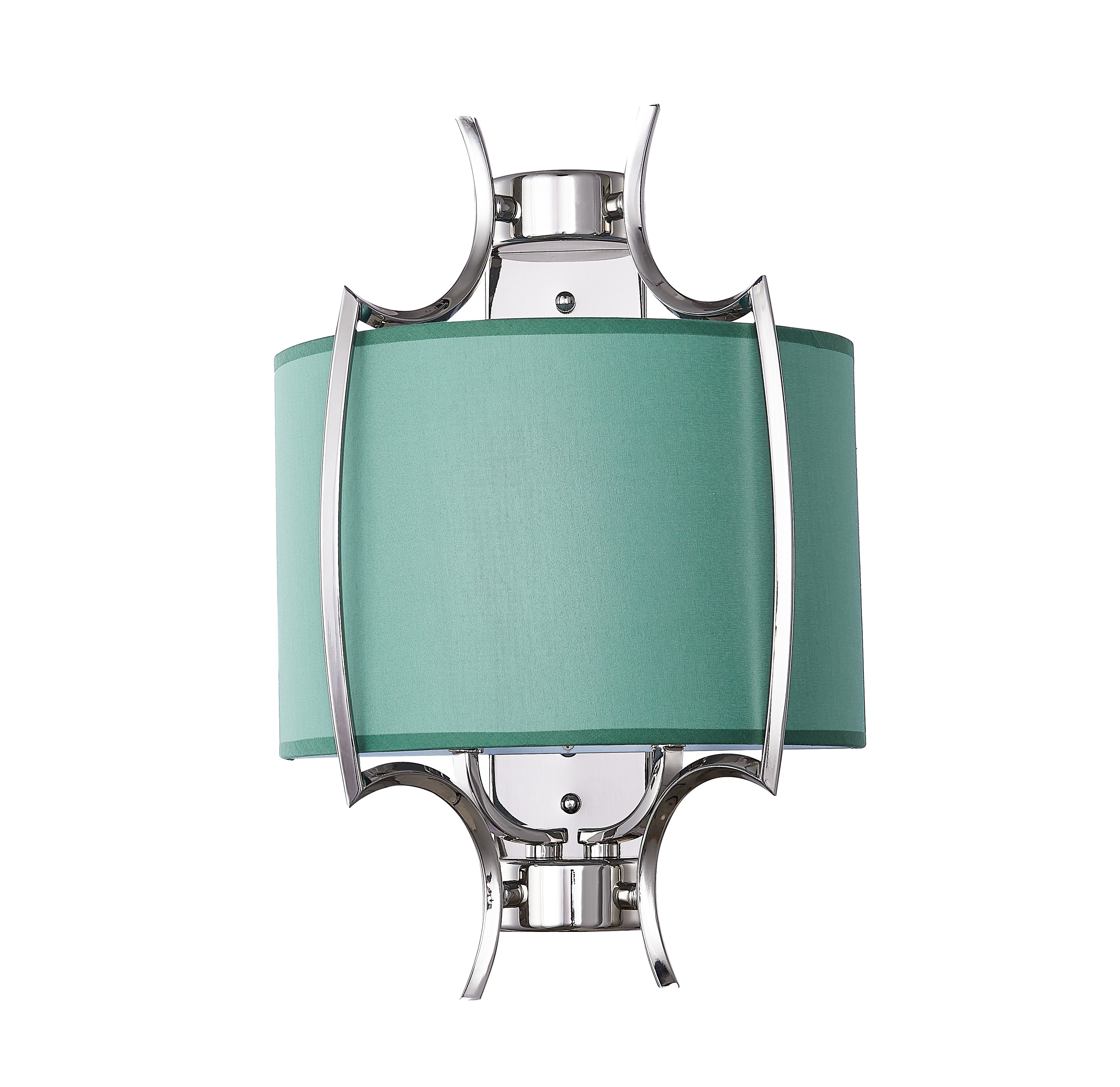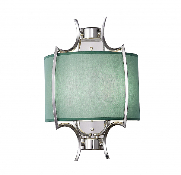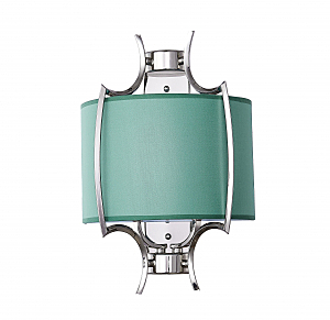 Бра из металла цвета глянцевый никель с бирюзовым тканевым абажуром внутри. H440mm x L300mm x W160mm. 2ХЕ14