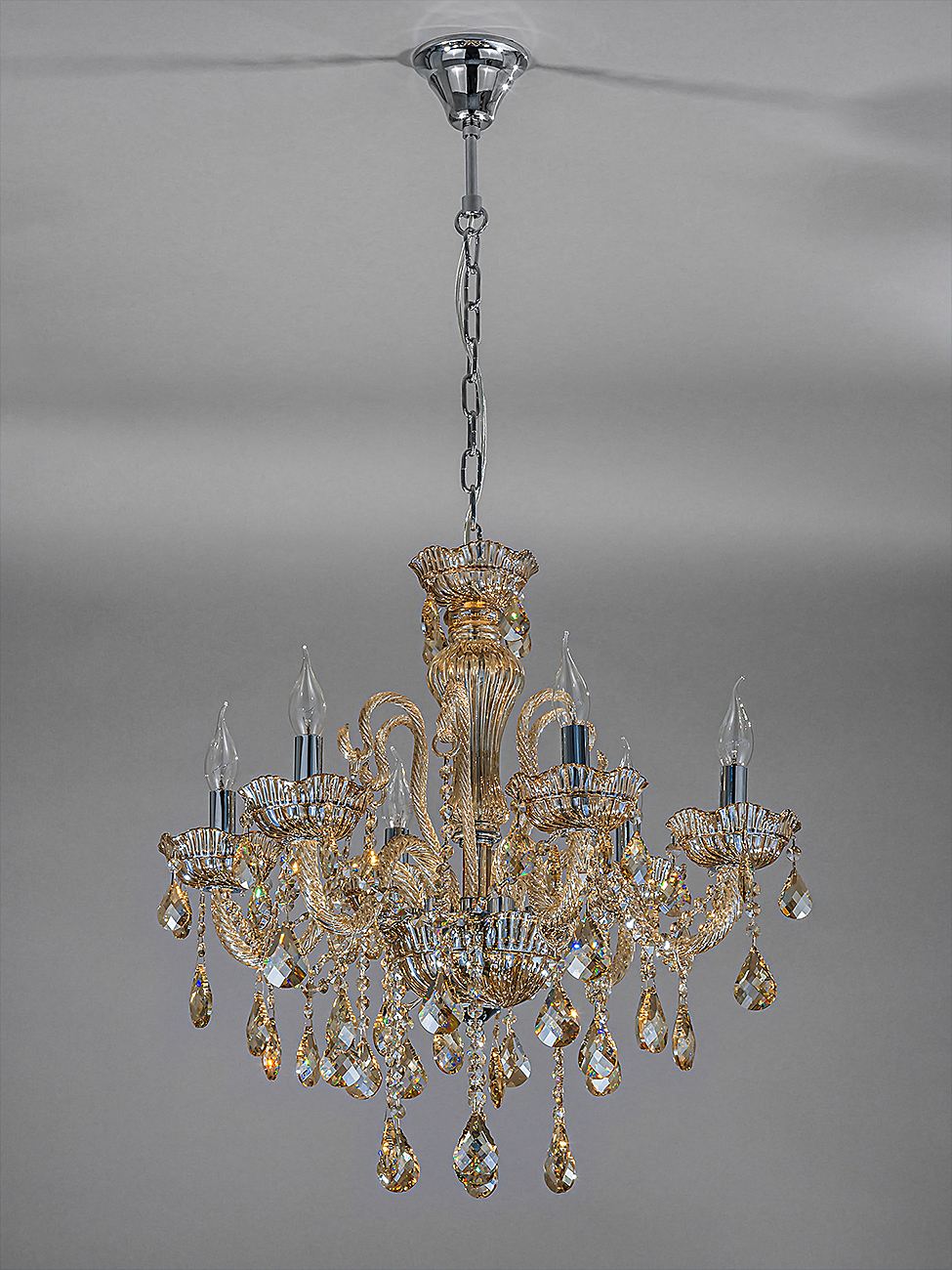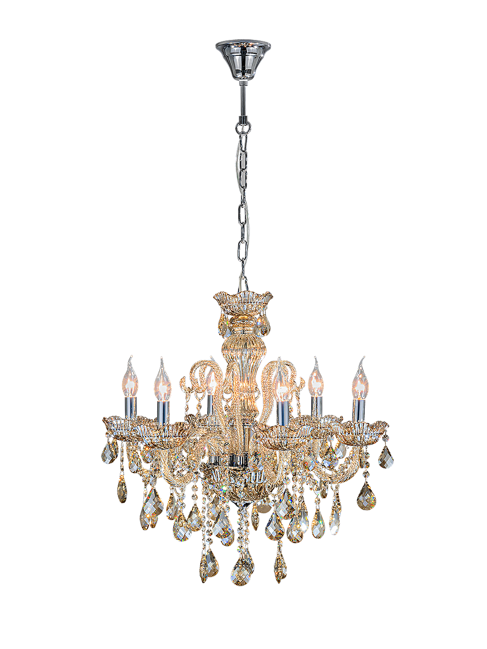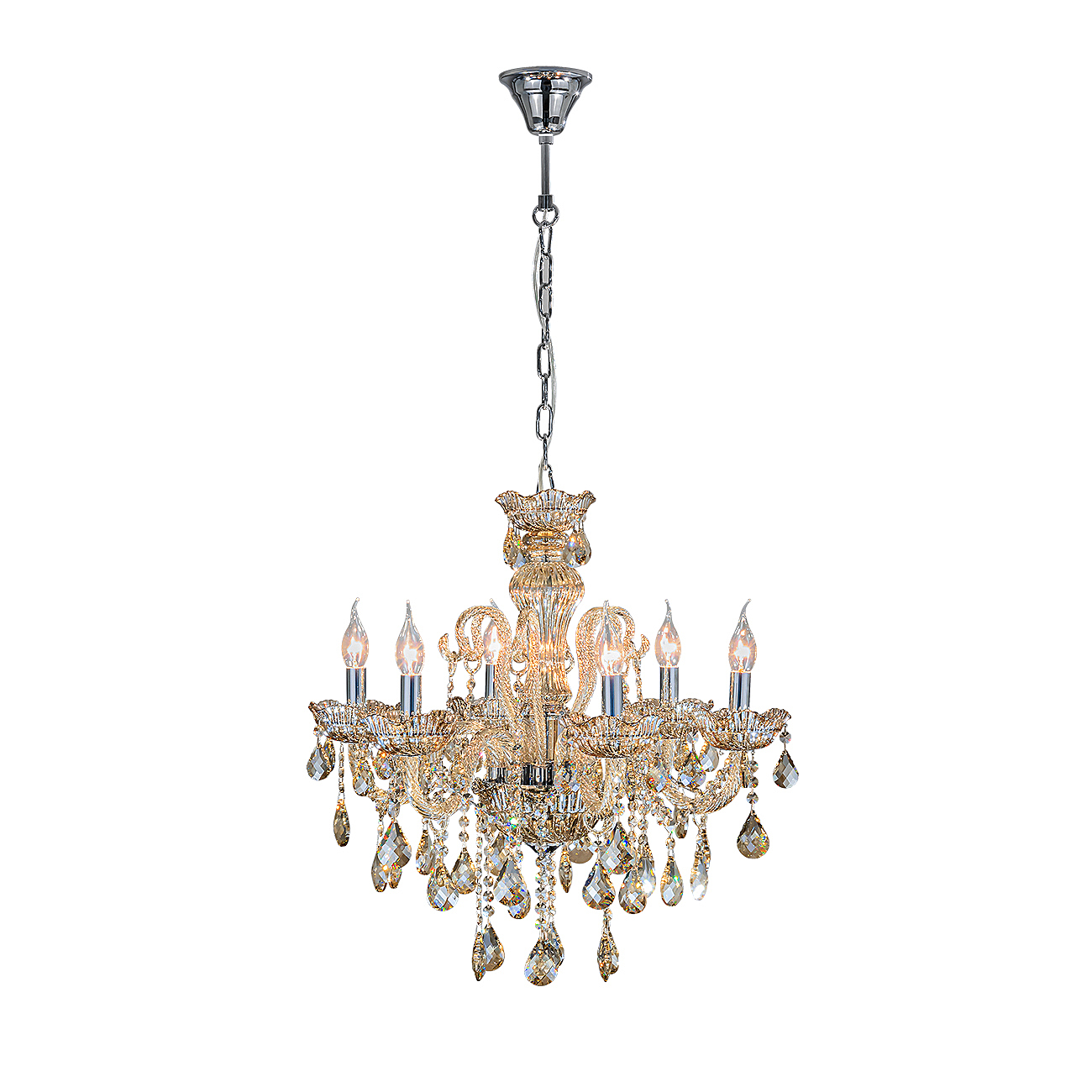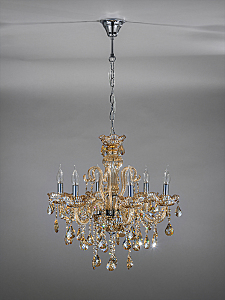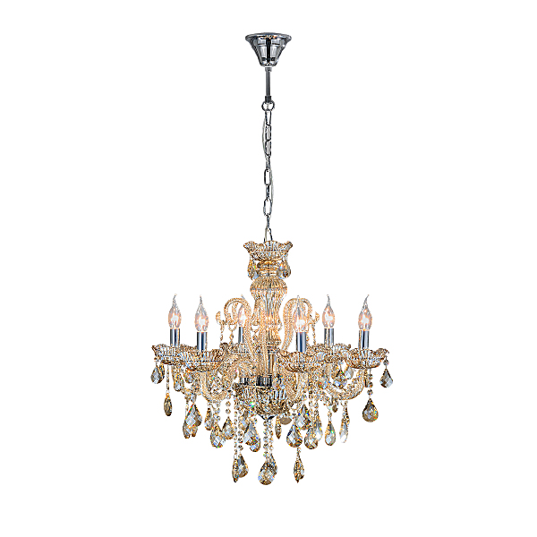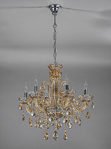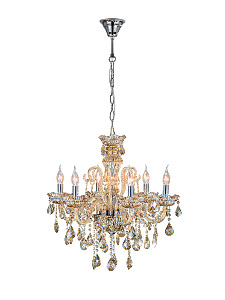Подвесной светильник серии Premium line 6x40Вт E14, металл/стекло/кристаллы, хром/янтарное стекло/янтарные кристаллы