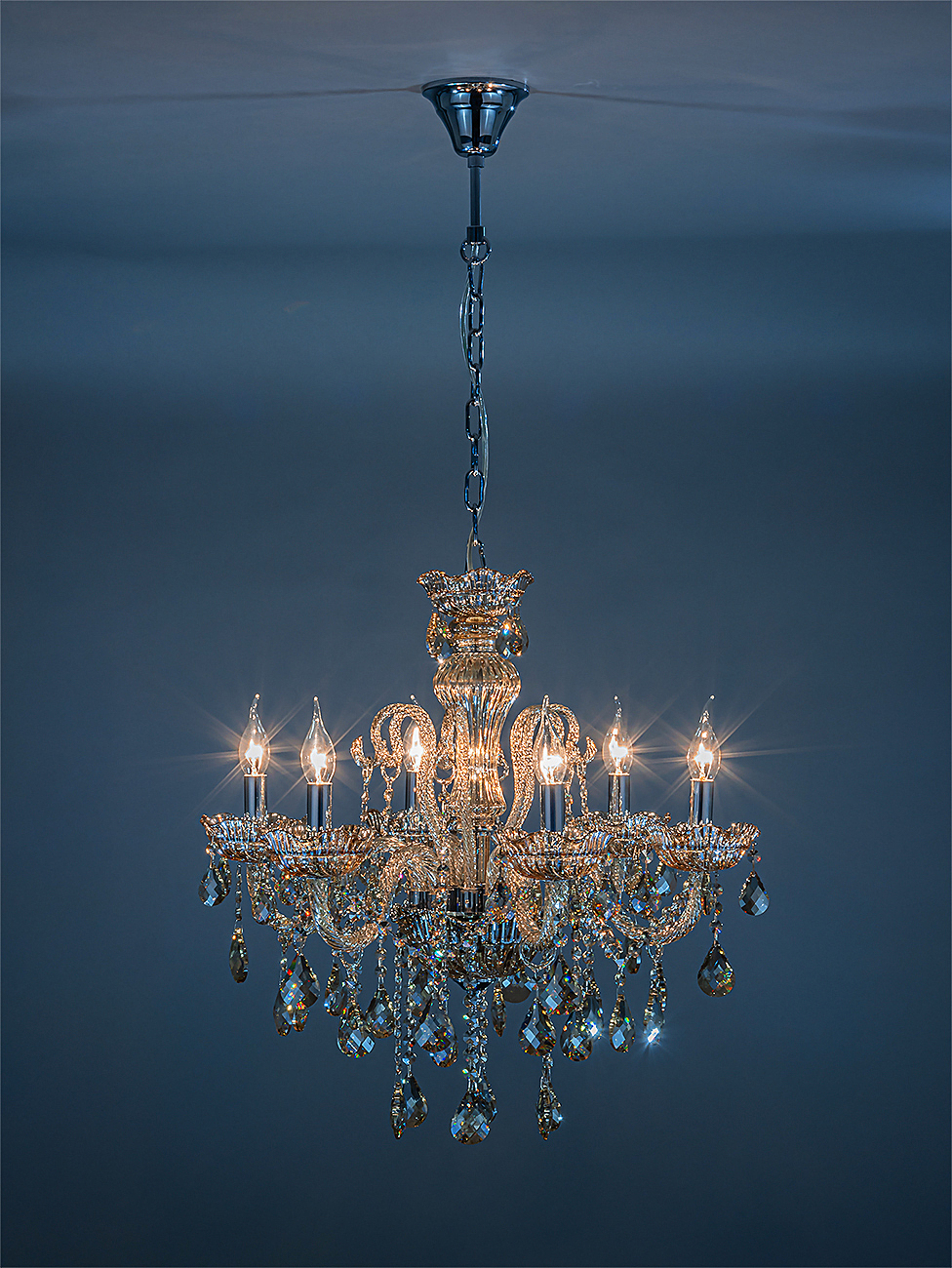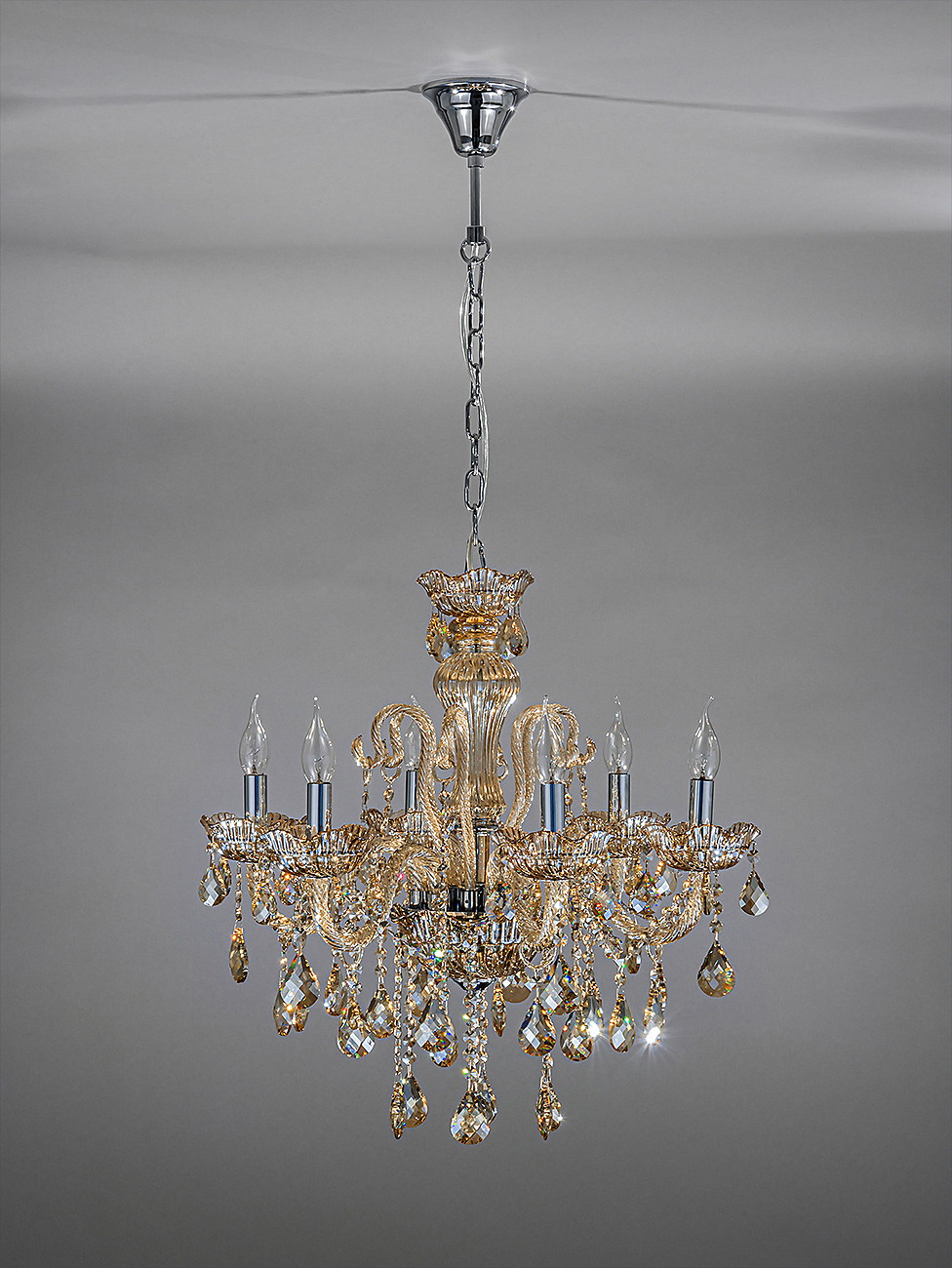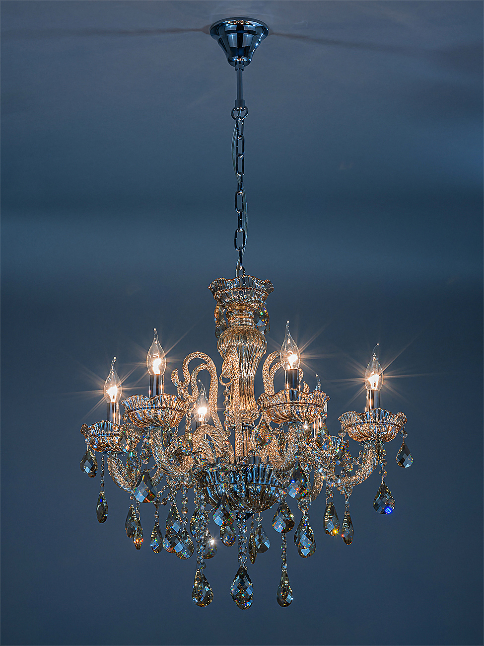 Подвесной светильник серии Premium line 6x40Вт E14, металл/стекло/кристаллы, хром/янтарное стекло/янтарные кристаллы