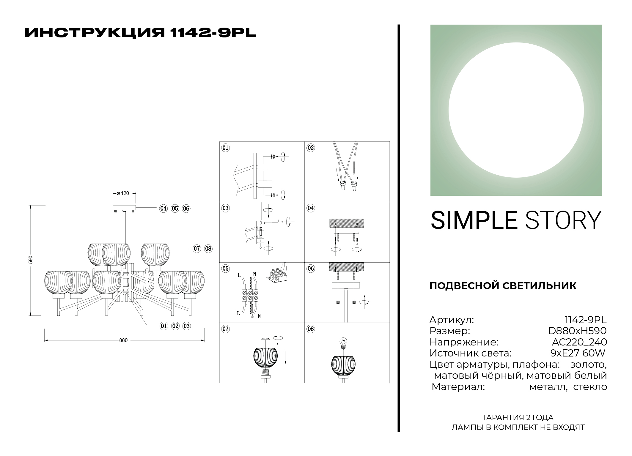Допускается отличие страны-изготовителя, указанной в характеристиках. Линии производства могут находиться в нескольких государствах. Это не влияет на качество изготовления товара: все заводы данного бренда работают по общим стандартам, а готовые изделия проходят соответствующий контроль.Россия Коллекция 1142 ЦветЦвет арматуры Золото, Матовый черный Цвет Золото Материал арматуры Металл Цвет плафона Матовый белый Материал плафона Стекло РазмерыВысота (мм) 590 Диаметр (мм) 880 Ширина (мм) 880 Диаметр абажура-плафона 150 Высота абажура-плафона 120 ЭлектрикаКоличество ламп (шт) 9 Цоколь E27 Мощность лампы (Вт) 60 Напряжение (В) 220 Дополнительная информацияСпособ крепления Планка Степень защиты (IP) IP20 Вес (Кг) 5 -