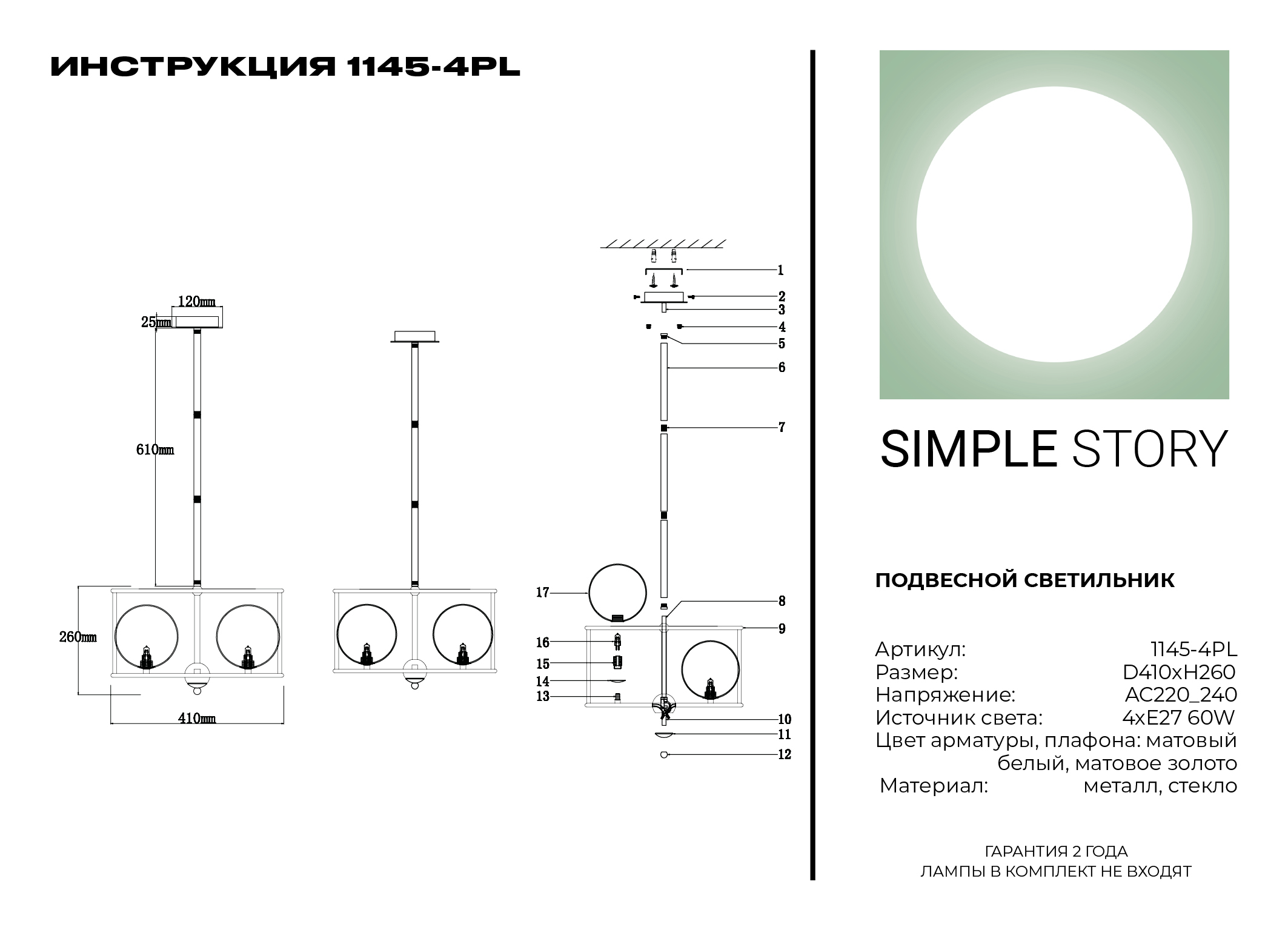 Производитель Simple Light Артикул 1145-4PL Страна