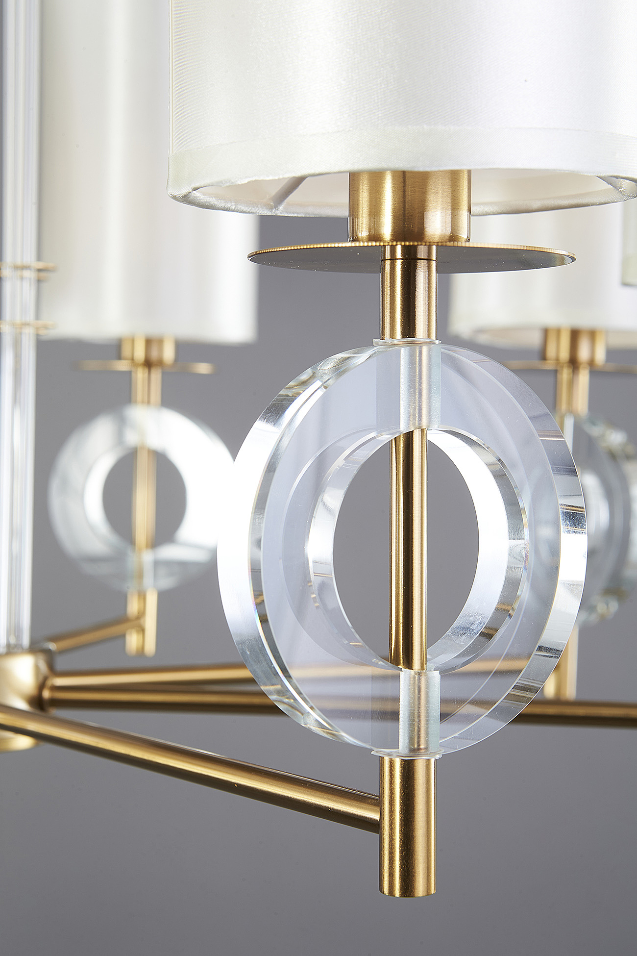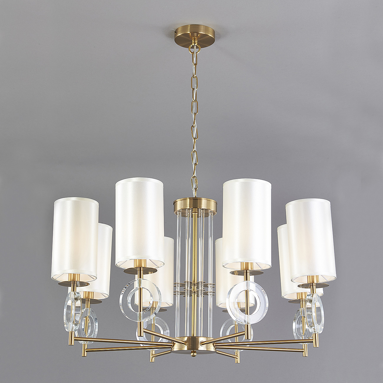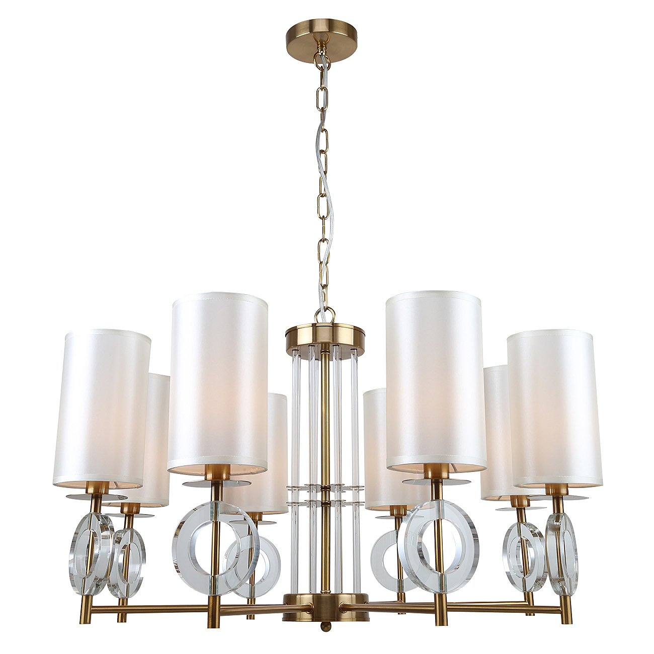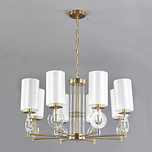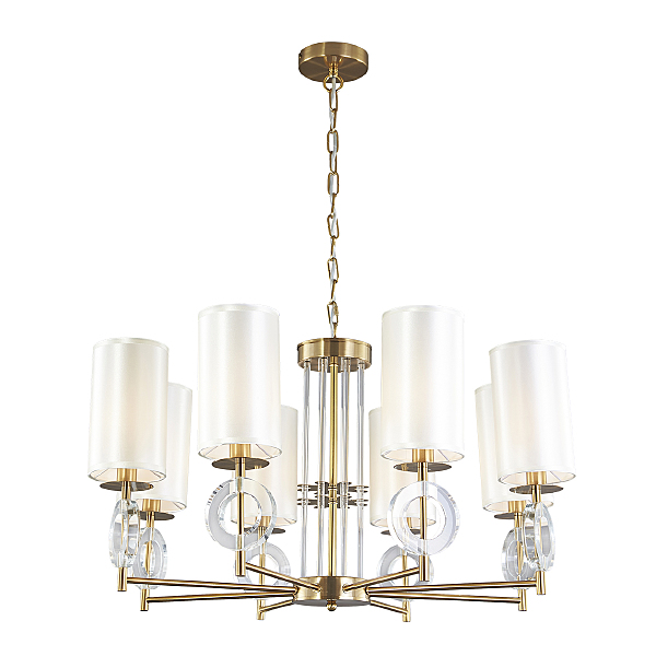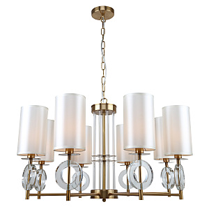 Подвесной светильник 8х40Вт Е14, металл/ткань/стекло, латунь/слоновая кость/прозрачное стекло