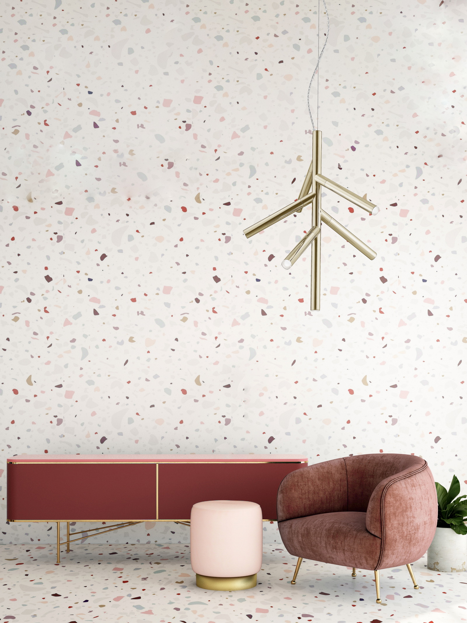 Подвес из металла цвета блестящего золота. Шесть источников света LED 30W, D510mm x H790х2170mm