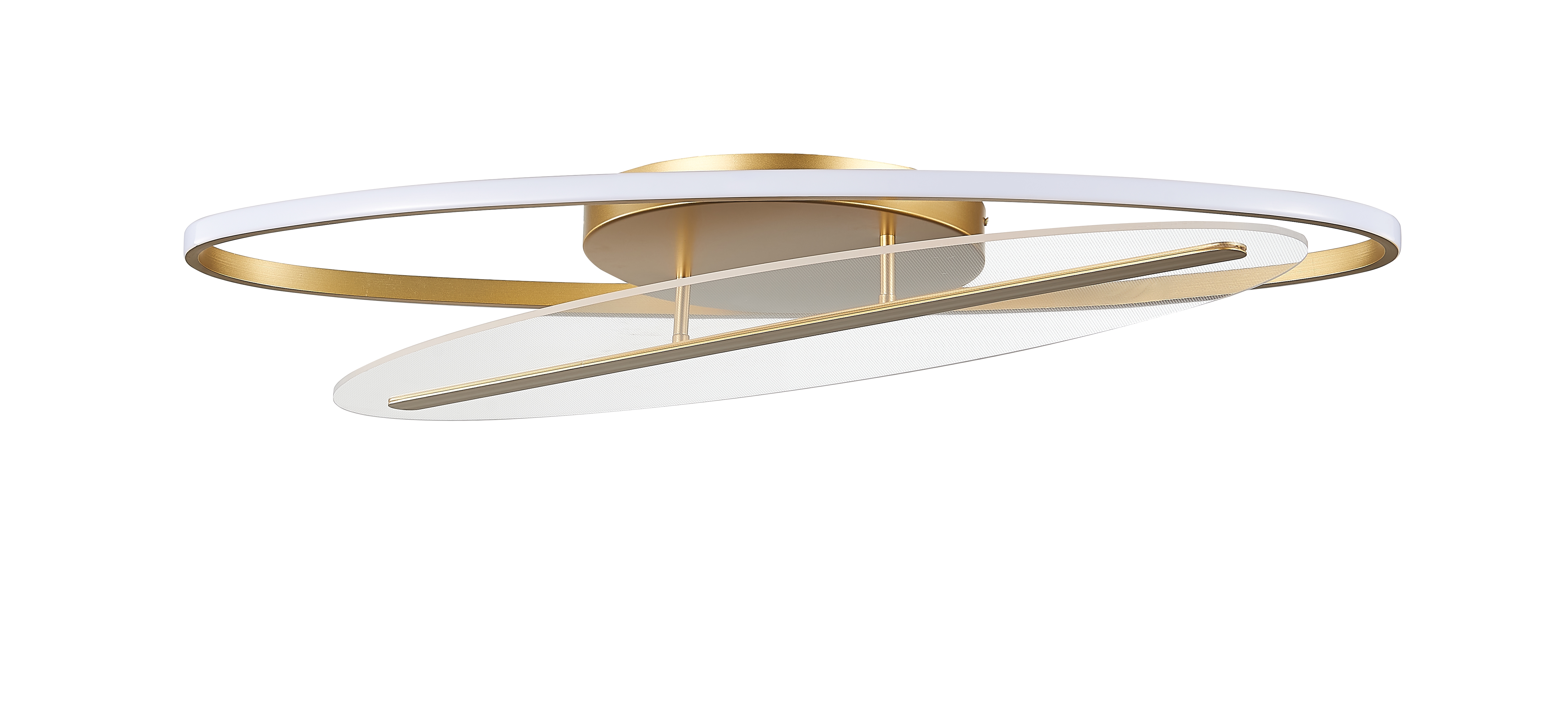 Потолочный светильник из металла цвета матового золота, с акриловой, пропускающей свет, декоративной вставкой. LED 3000К 93W, L900mm x W570 x H120mm