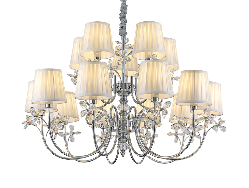 Допускается отличие страны-изготовителя, указанной в характеристиках. Линии производства могут находиться в нескольких государствах. Это не влияет на качество изготовления товара: все заводы данного бренда работают по общим стандартам, а готовые изделия проходят соответствующий контроль.США Коллекция 1170 ЦветЦвет арматуры Хром Цвет Хром Материал арматуры Железо Цвет декора прозрачный Материал декора Хрусталь РазмерыВысота (мм) 560 Диаметр (мм) 930 Ширина (мм) 930 ЭлектрикаКоличество ламп (шт) 15 Цоколь E14 Мощность лампы (Вт) 60 Дополнительная информацияТип подвеса На цепи -