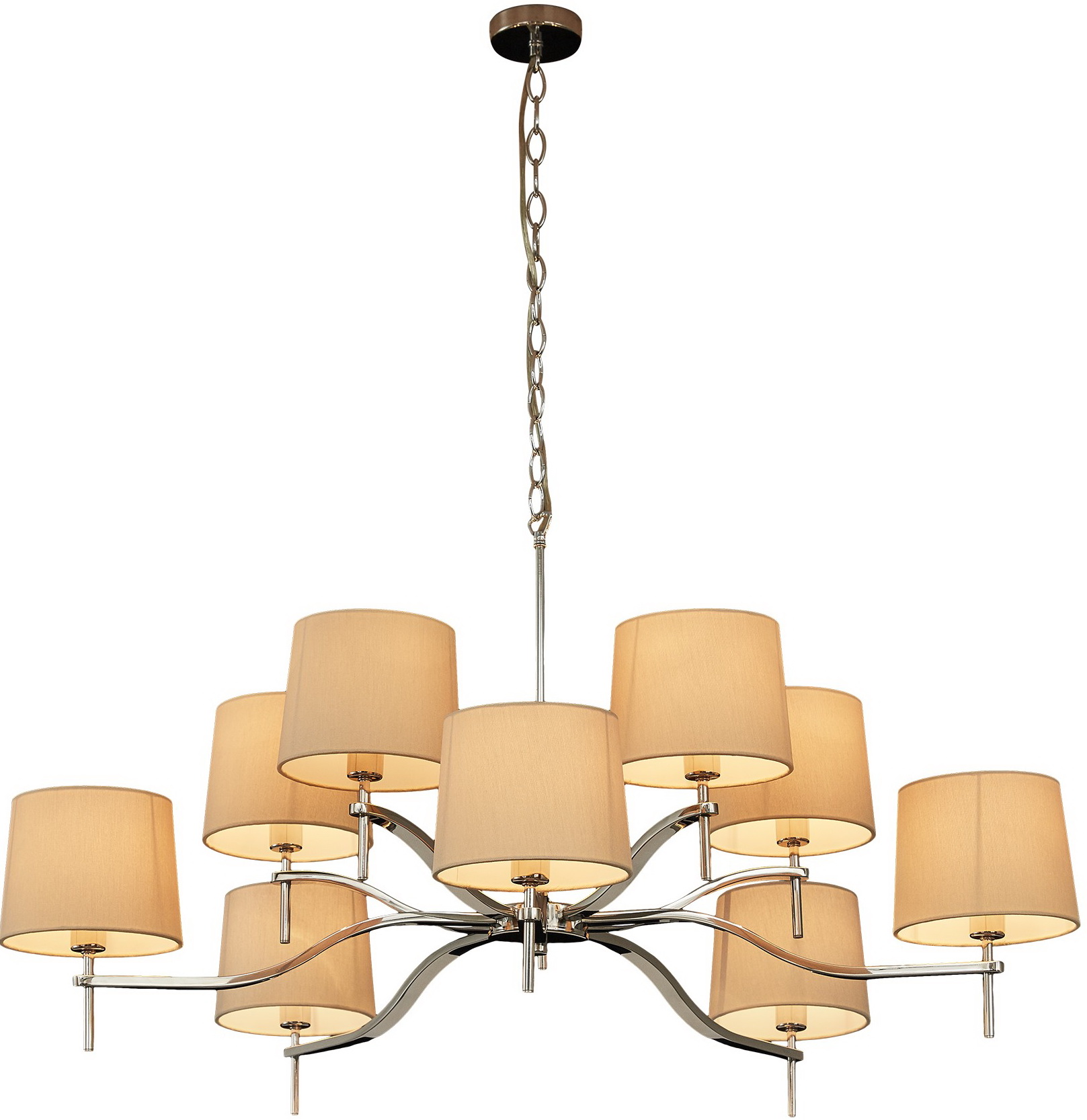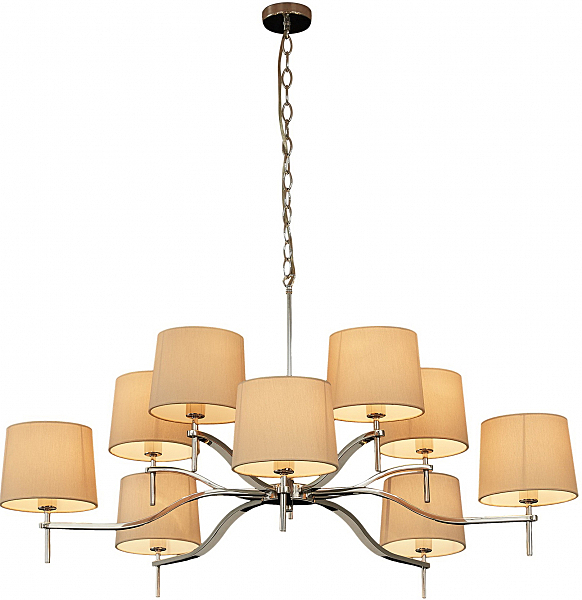 Допускается отличие страны-изготовителя, указанной в характеристиках. Линии производства могут находиться в нескольких государствах. Это не влияет на качество изготовления товара: все заводы данного бренда работают по общим стандартам, а готовые изделия проходят соответствующий контроль.Италия Коллекция 1341 ЦветЦвет арматуры Хром Цвет Хром Материал арматуры Нержавеющая сталь Цвет плафона Белый Материал плафона Ткань РазмерыВысота (мм) 960 Диаметр (мм) 1000 Высота минимальная (мм) 460 Ширина (мм) 1000 ЭлектрикаКоличество ламп (шт) 10 Цоколь E14 Лампочки в комплекте Нет в комплекте Мощность лампы (Вт) 40 Напряжение (В) 220 Дополнительная информацияСпособ крепления Крюк Степень защиты (IP) IP20 Вес (Кг) 6,739 Тип подвеса На цепи -