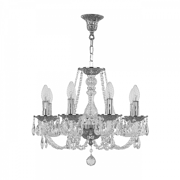 Допускается отличие страны-изготовителя, указанной в характеристиках. Линии производства могут находиться в нескольких государствах. Это не влияет на качество изготовления товара: все заводы данного бренда работают по общим стандартам, а готовые изделия проходят соответствующий контроль.Чехия Коллекция 1601 ЦветЦвет арматуры Никель Цвет Никель Материал арматуры Латунь Цвет декора бесцветный Материал декора Стекло РазмерыВысота (мм) 420 Диаметр (мм) 510 Ширина (мм) 510 ЭлектрикаКоличество ламп (шт) 8 Цоколь E14 Мощность лампы (Вт) 40 Дополнительная информацияТип подвеса На цепи -