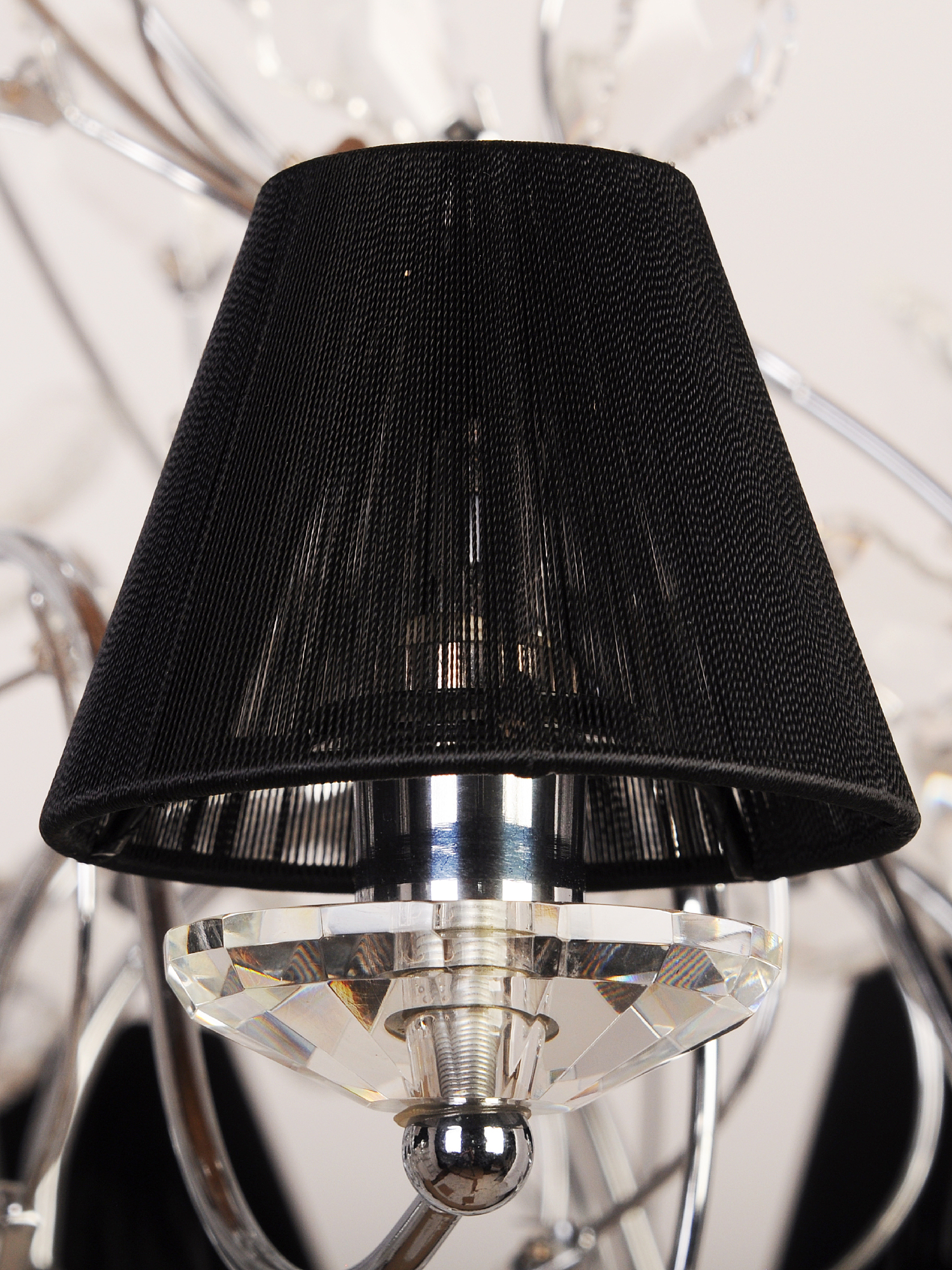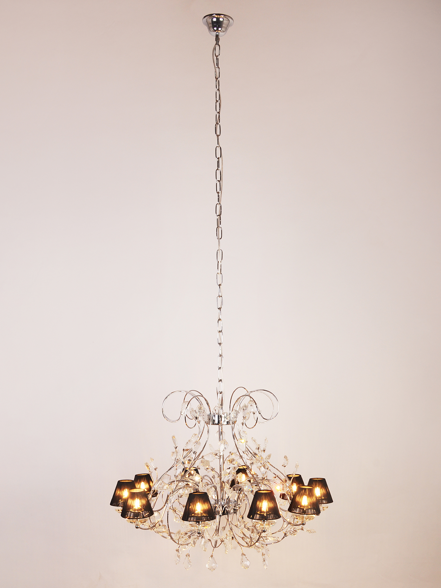 Допускается отличие страны-изготовителя, указанной в характеристиках. Линии производства могут находиться в нескольких государствах. Это не влияет на качество изготовления товара: все заводы данного бренда работают по общим стандартам, а готовые изделия проходят соответствующий контроль.Италия ЦветЦвет арматуры Хром Цвет Хром Материал арматуры Металл Цвет плафона Черный Материал плафона Текстиль РазмерыВысота (мм) 560 Диаметр (мм) 120 Ширина (мм) 120 ЭлектрикаКоличество ламп (шт) 10 Цоколь G9 Тип лампы Светодиодная, Накаливания Мощность лампы (Вт) 40 Напряжение (В) 220 Площадь освещения 20 Дополнительная информацияСпособ крепления Крюк Степень защиты (IP) IP20 Вес (Кг) 9,5 Тип подвеса На цепи -