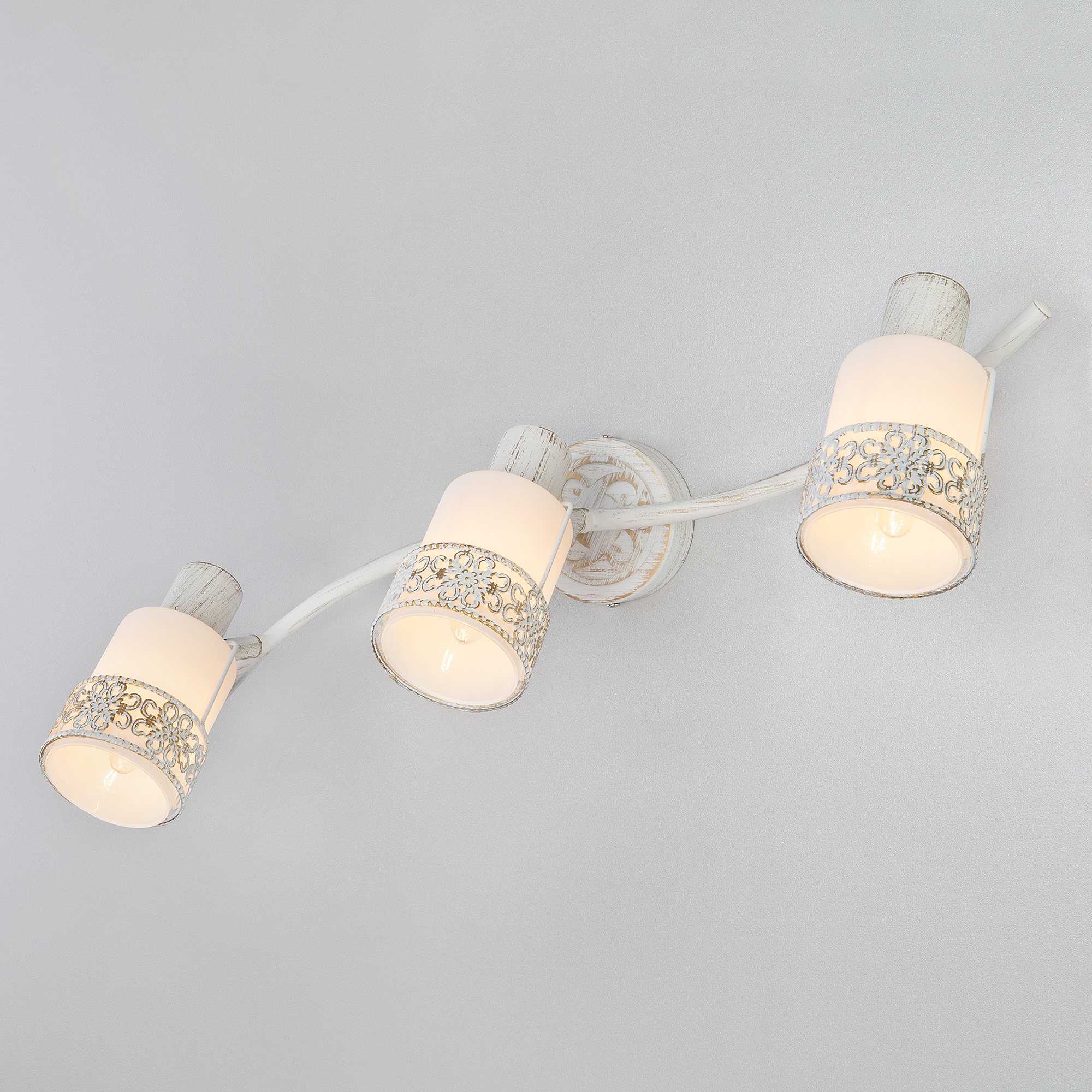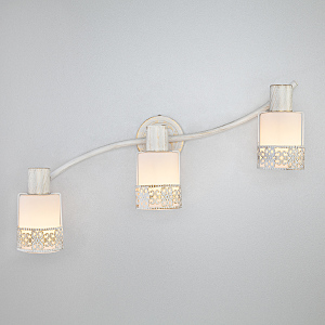 Допускается отличие страны-изготовителя, указанной в характеристиках. Линии производства могут находиться в нескольких государствах. Это не влияет на качество изготовления товара: все заводы данного бренда работают по общим стандартам, а готовые изделия проходят соответствующий контроль.Китай Коллекция Silvia ЦветЦвет арматуры белый с золотом Цвет Белый Материал арматуры Металл Цвет плафона Белый Материал декора Металл Материал плафона Стекло РазмерыВысота (мм) 170 Длина (мм) 550 Ширина (мм) 160 ЭлектрикаКоличество ламп (шт) 3 Цоколь E14 Лампочки в комплекте Нет в комплекте Мощность лампы (Вт) 40 Напряжение (В) 220 Дополнительная информацияТехническая оссобеность Поворотный -