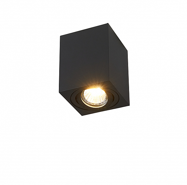 Накладной поворотный светильник потолочного крепления, поворотный, черного цвета, источник света фиксируется металлическим кольцом, 1хGU10