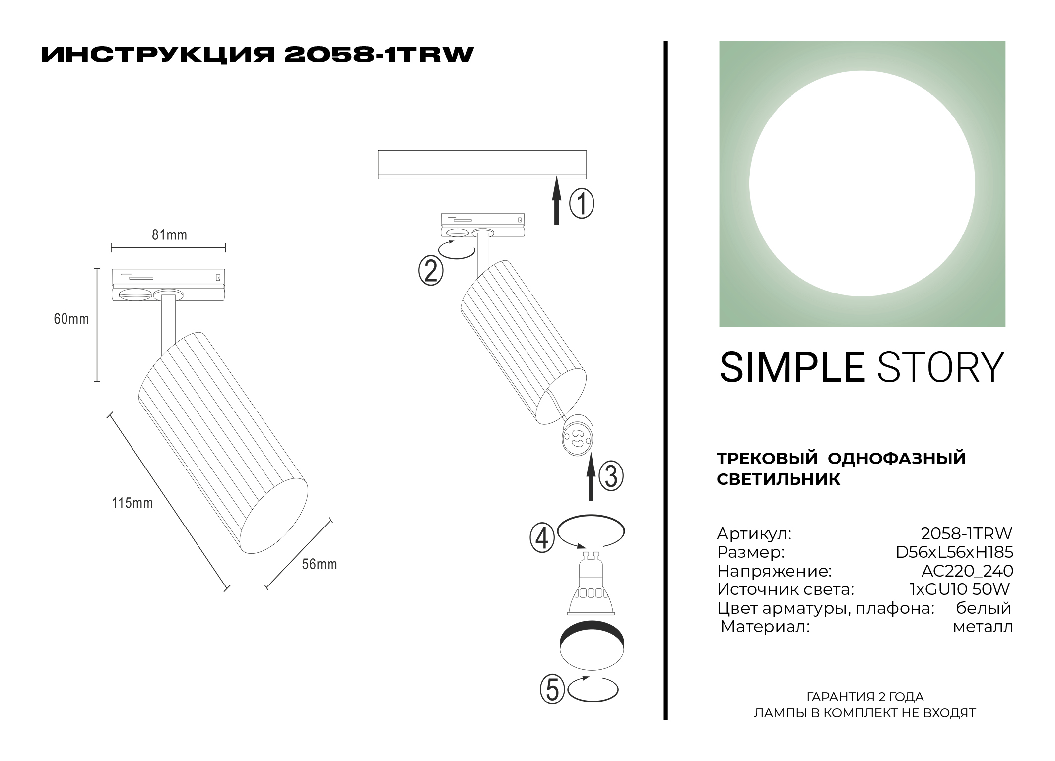 Производитель Simple Light Артикул 2058-1TRW Страна