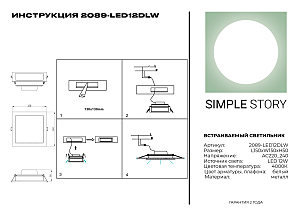 Производитель Simple Light Артикул 2089-LED12DLW Страна