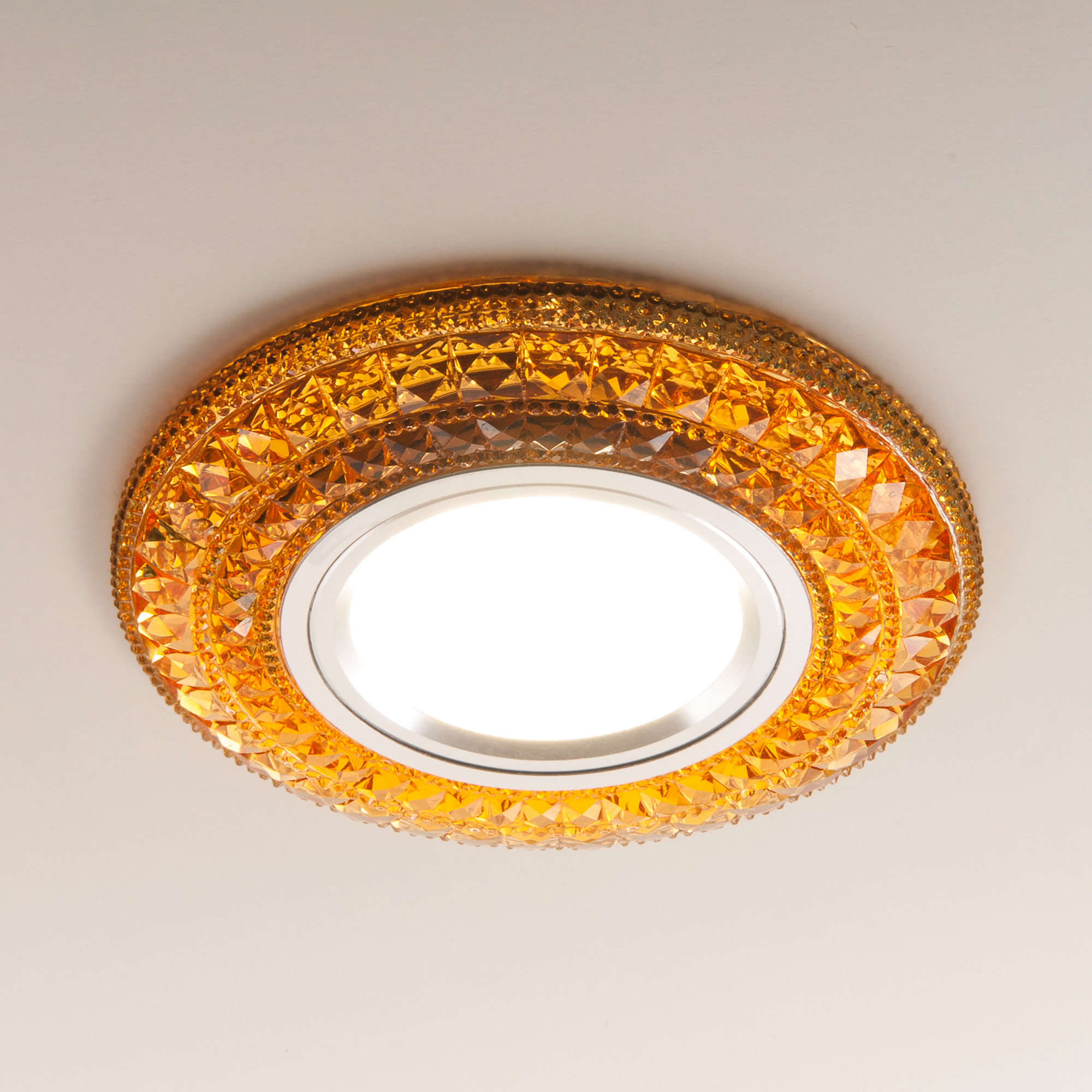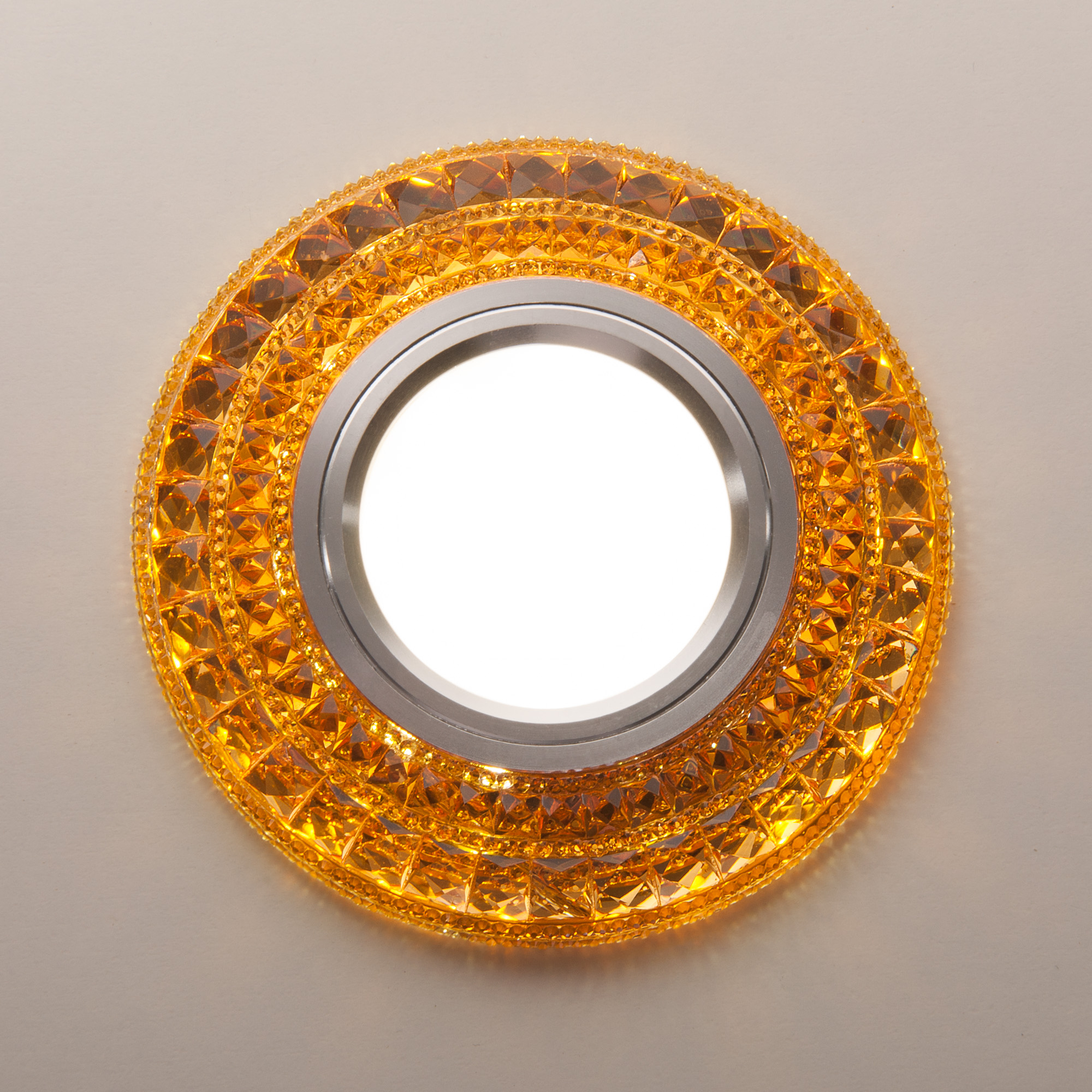 Допускается отличие страны-изготовителя, указанной в характеристиках. Линии производства могут находиться в нескольких государствах. Это не влияет на качество изготовления товара: все заводы данного бренда работают по общим стандартам, а готовые изделия проходят соответствующий контроль.Китай Коллекция 2160 ЦветЦвет арматуры тонированный Цвет Золото Материал арматуры Цинковый сплав, Акриловая смола РазмерыВысота (мм) 11 Диаметр (мм) 98 Ширина (мм) 98 Высота врезного отверствия (мм) 18 Диаметр врезного отверстия (мм) 60 ЭлектрикаКоличество ламп (шт) 1 Цоколь G5.3 Мощность лампы (Вт) 35 Напряжение (В) 220 Цветовая температура нейтральный (4200k) Дополнительная информацияТехническая оссобеность Дополнительная подсветка -
