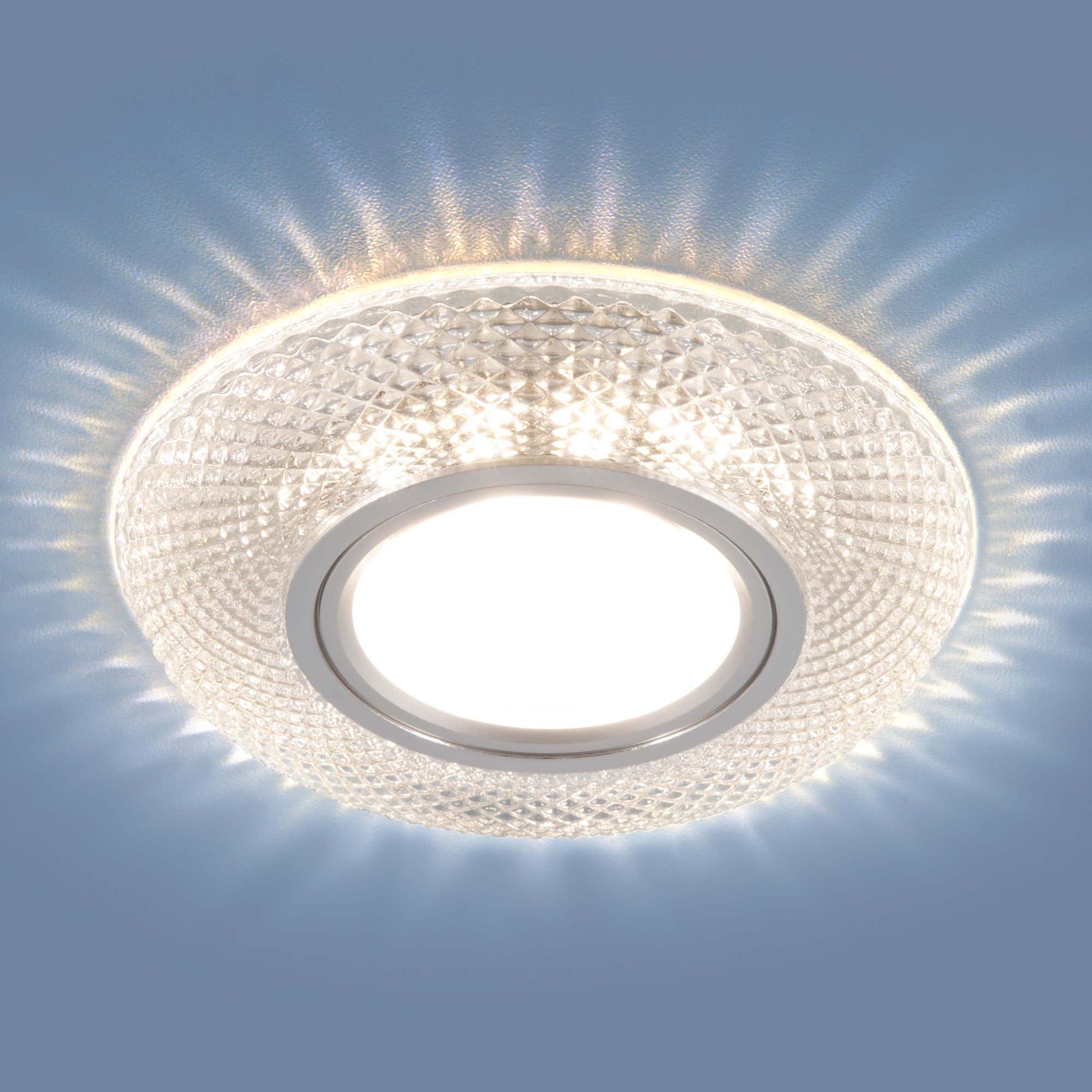 Допускается отличие страны-изготовителя, указанной в характеристиках. Линии производства могут находиться в нескольких государствах. Это не влияет на качество изготовления товара: все заводы данного бренда работают по общим стандартам, а готовые изделия проходят соответствующий контроль.Китай ЦветЦвет арматуры Прозрачный Цвет Прозрачный Материал арматуры Стекло РазмерыВысота (мм) 13 Диаметр (мм) 99 Ширина (мм) 99 Высота врезного отверствия (мм) 12 Диаметр врезного отверстия (мм) 65 ЭлектрикаКоличество ламп (шт) 1 Цоколь LED, G5.3 Мощность лампы (Вт) 35+3 Напряжение (В) 220 Цветовая температура нейтральный (4200k) Площадь освещения 2-3 Дополнительная информацияСтепень защиты (IP) IP20 Техническая оссобеность Дополнительная подсветка -