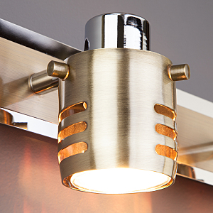 Допускается отличие страны-изготовителя, указанной в характеристиках. Линии производства могут находиться в нескольких государствах. Это не влияет на качество изготовления товара: все заводы данного бренда работают по общим стандартам, а готовые изделия проходят соответствующий контроль.Китай Коллекция Leonardo ЦветЦвет арматуры Хром, Античная бронза Цвет Бронза Материал арматуры Металл Цвет плафона античная бронза Материал плафона Металл РазмерыВысота (мм) 150 Длина (мм) 550 Ширина (мм) 140 ЭлектрикаКоличество ламп (шт) 3 Цоколь G5.3 Мощность лампы (Вт) 50 Дополнительная информацияВес (Кг) 1.26 кг Техническая оссобеность Поворотный -