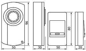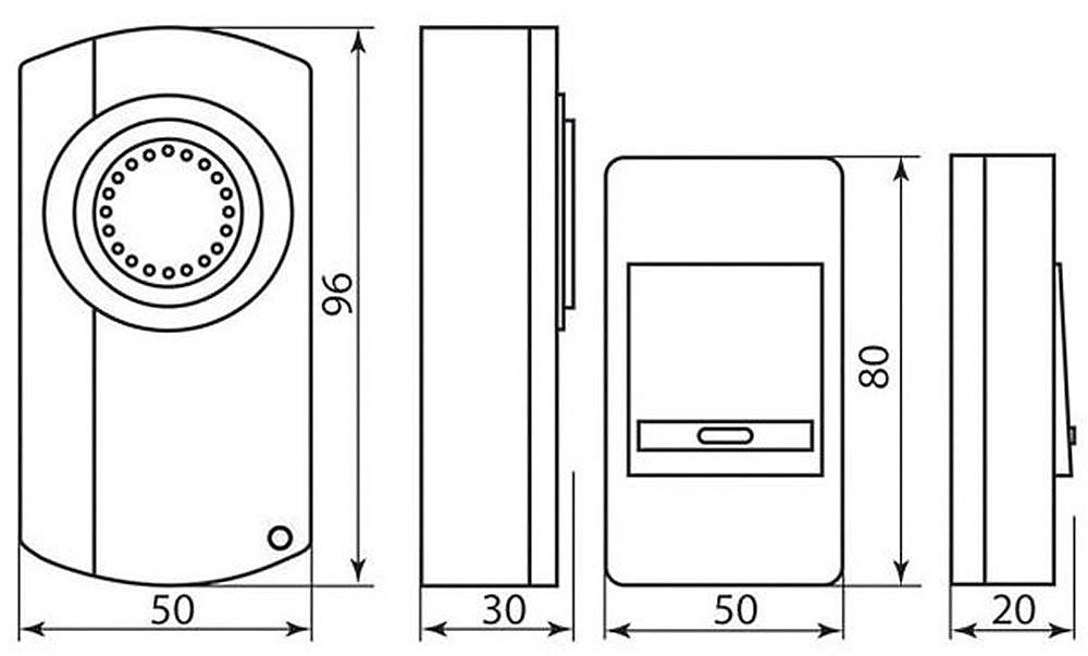 Звонок электрический дверной беспроводной FERON E-221, 32 мелодии, дальность действия 100м, цвет белый/синий, регулировка громкости - нет, шифрование сигнала - нет; БАЗА: 2*1,5V/AAA, 98*50*30 мм, КНОПКА: IP20, 12V 23A*1 (в комплекте) , раб.t -10...+40 °С, размер кнопки 80*50*20мм