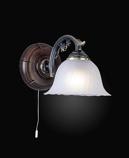 Одно-рожковое бра. Украсит интерьер в классическом стиле. Благородная, изящная серия. Корпус светильника состит из металла с покрытием BRONZO SF. и ценных пород дерева. Плафоны - VETRO SATIN.