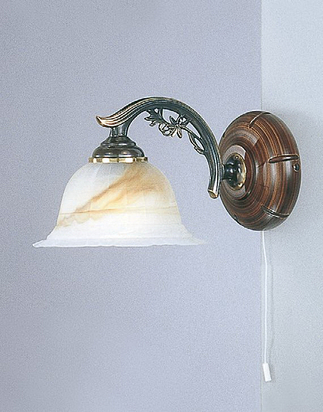Одно-рожковое бра. Украсит интерьер в классическом стиле. Благородная, изящная серия. Корпус светильника состит из металла с покрытием BRONZO SF. и ценных пород дерева. Плафоны - VETRO TABACCO.