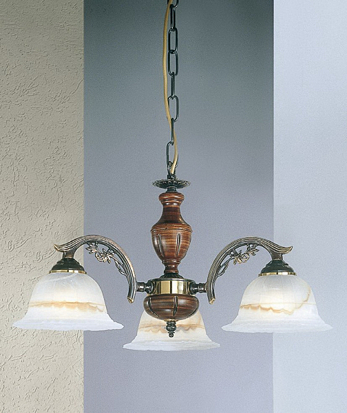 Трёх-рожковая классическая люстра. Украсит интерьер в классическом стиле. Благородная, изящная серия. Корпус люстры состит из металла с покрытием BRONZO SF. и ценных пород дерева. Плафоны - VETRO TABACCO.
