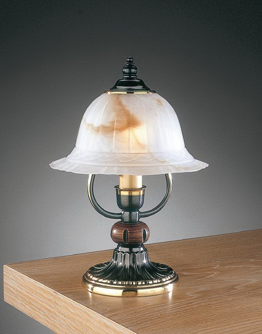 Настольный светильник. Украсит интерьер в классическом стиле. Благородная, изящная серия. Корпус светильника состит из металла с покрытием BRONZO SF. и ценных пород дерева. Плафоны - VETRO TABACCO.