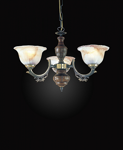 Трёх-рожковая классическая люстра. Украсит интерьер в классическом стиле. Благородная, изящная серия. Корпус люстры состит из металла с покрытием BRONZO SF. и ценных пород дерева. Плафоны - VETRO TABACCO.