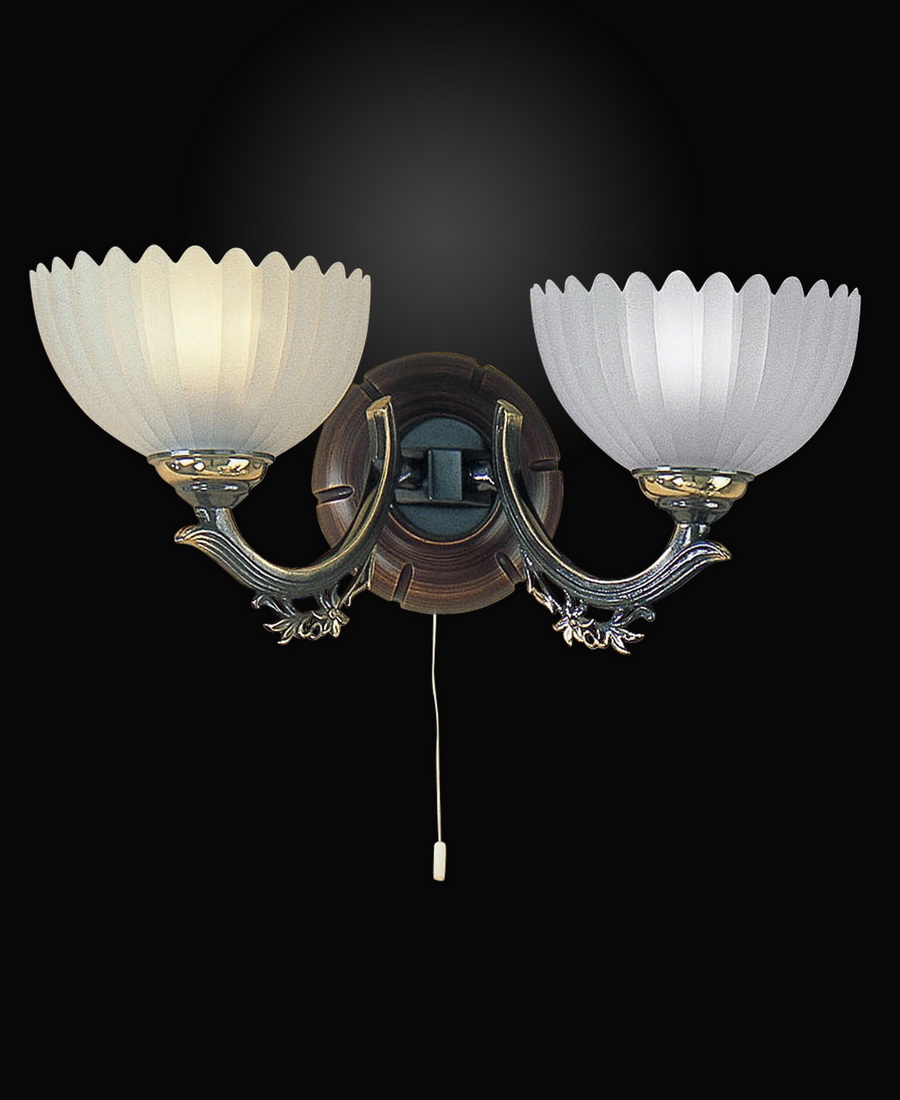 Двух-рожковое бра. Украсит интерьер в классическом стиле. Благородная, изящная серия. Корпус светильника состит из металла с покрытием BRONZO SF. и ценных пород дерева. Плафоны - VETRO SATIN.