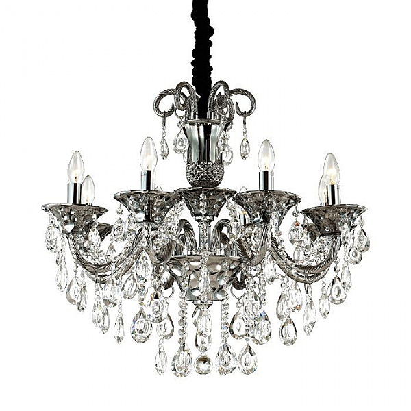 Люстра 2940/8 серии Valensa оформлена в классическом стиле. Вензеля из темно-серого стекла и множество хрустальных подвесок придают данной моделе роскошь исполнения, цвет покрытия базы хром. Рекомендуем исползовать лампочки типа "свеча на ветру". Цоколь Е14. Мощность 8x40W. Тип крепления "крюк". Нет ламп в комплекте.