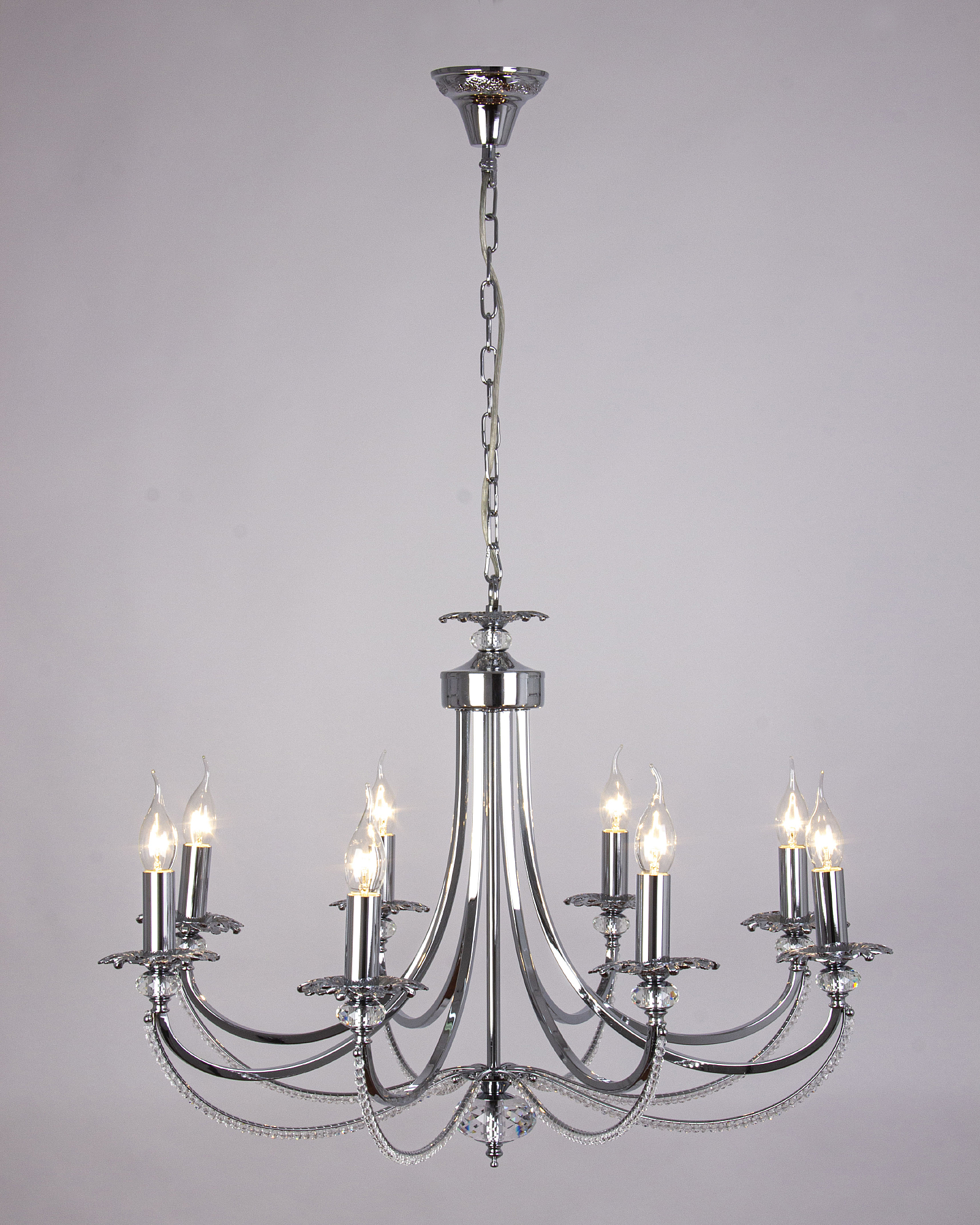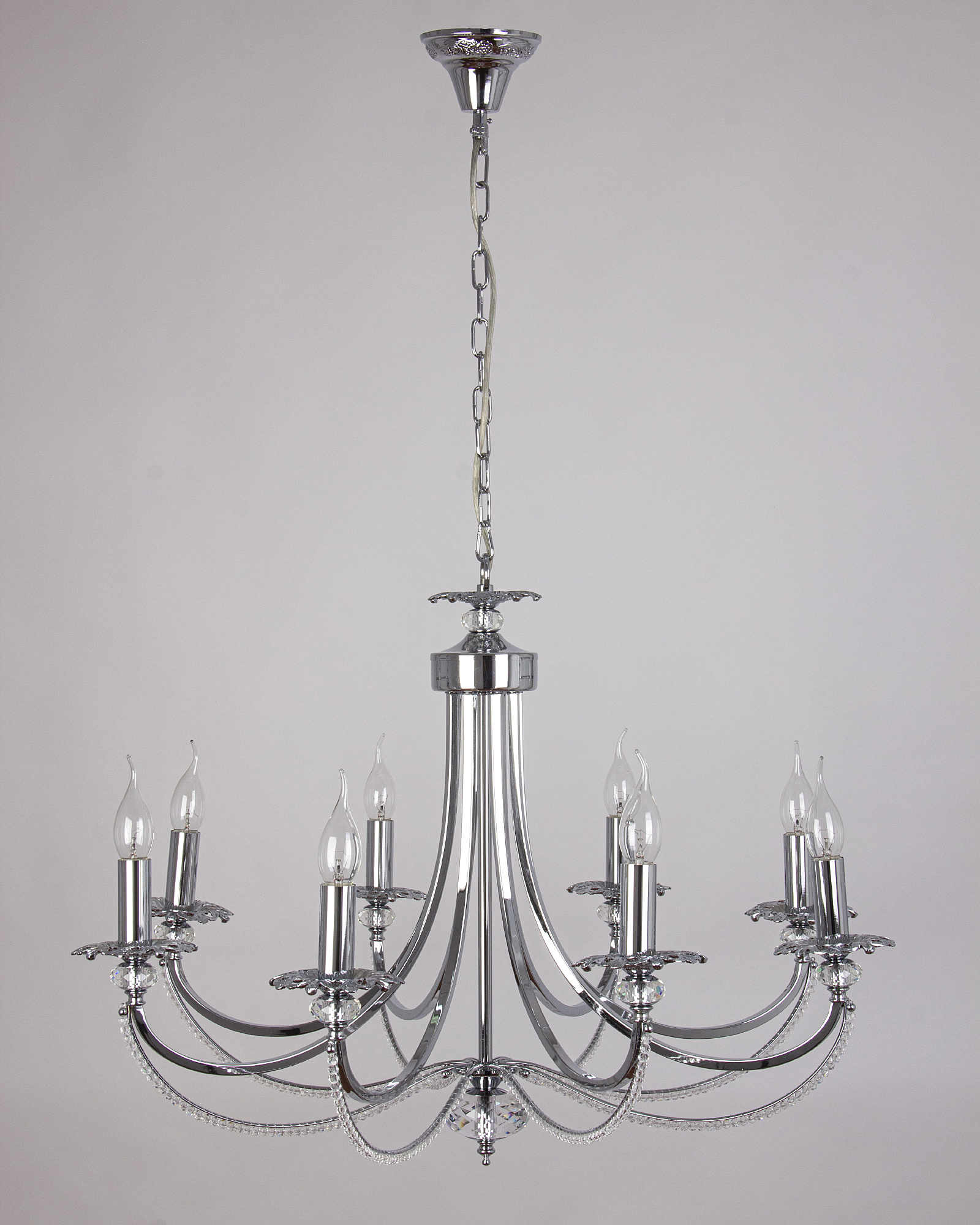Допускается отличие страны-изготовителя, указанной в характеристиках. Линии производства могут находиться в нескольких государствах. Это не влияет на качество изготовления товара: все заводы данного бренда работают по общим стандартам, а готовые изделия проходят соответствующий контроль.Германия ЦветЦвет арматуры Хром Цвет Хром Материал арматуры Металл РазмерыВысота (мм) 550 Диаметр (мм) 800 Ширина (мм) 800 ЭлектрикаКоличество ламп (шт) 8 Цоколь E14 Тип лампы Светодиодная, Накаливания Мощность лампы (Вт) 40 Напряжение (В) 220 Площадь освещения 18 Дополнительная информацияСпособ крепления Крюк Степень защиты (IP) IP20 Место установки на потолок Тип подвеса На цепи -