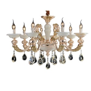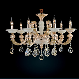 Люстра с хрустальным декором станет ярким световым акцентом в классических интерьерах и создаст качественное освещение. Изящные формы и классический стиль добавят вашей гостиной утонченного аристократизма. В качестве источника света используются сменные лампы типа свеча на ветру с цоколем E14. Корпус светильника выполнен из высококачественного и прочного металла с надежным покрытием. Люстра походит для всех типов потолков, в том числе натяжных. Тип крепления - крючок. Cветильник на потолок/светильник потолочный /люстра классическая/люстра под крючок /рестораны/кафе/освещение рабочей зоны/ интерьерные светильники/интерьер для дома