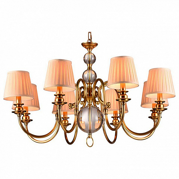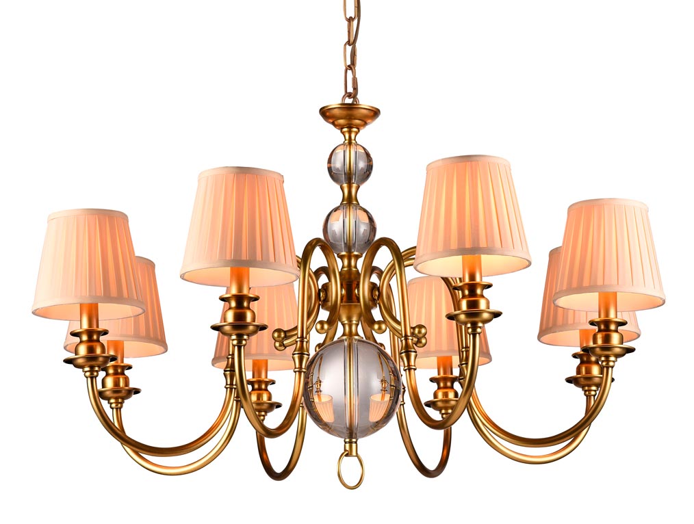 Допускается отличие страны-изготовителя, указанной в характеристиках. Линии производства могут находиться в нескольких государствах. Это не влияет на качество изготовления товара: все заводы данного бренда работают по общим стандартам, а готовые изделия проходят соответствующий контроль.США Коллекция 3100 ЦветЦвет арматуры черная латунь Цвет Золото Материал арматуры Железо крашеное Цвет плафона Белый Материал декора Хрустальное стекло Материал плафона Текстиль РазмерыВысота (мм) 1570 Диаметр (мм) 900 Высота минимальная (мм) 570 Ширина (мм) 900 ЭлектрикаКоличество ламп (шт) 8 Цоколь E14 Тип лампы Светодиодная, Накаливания Лампочки в комплекте Нет в комплекте Мощность лампы (Вт) 60 Общая мощность (Вт) 480 Напряжение (В) 220 Площадь освещения 24 Дополнительная информацияСтепень защиты (IP) IP20 Тип подвеса На цепи -