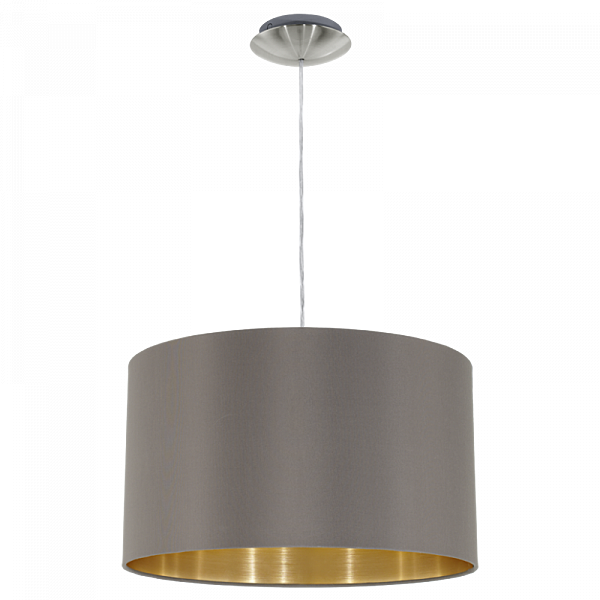 Допускается отличие страны-изготовителя, указанной в характеристиках. Линии производства могут находиться в нескольких государствах. Это не влияет на качество изготовления товара: все заводы данного бренда работают по общим стандартам, а готовые изделия проходят соответствующий контроль.Австрия Коллекция Maserlo ЦветЦвет арматуры матовый никель Цвет Никель Материал арматуры Металл Цвет плафона золото Материал плафона Ткань РазмерыВысота (мм) 1100 Диаметр (мм) 380 Ширина (мм) 380 ЭлектрикаКоличество ламп (шт) 1 Цоколь E27 Тип лампы Накаливания Лампочки в комплекте Нет в комплекте Возможность подключение диммера Есть Мощность лампы (Вт) 60 Общая мощность (Вт) 60 Напряжение (В) 220 Площадь освещения 3 Дополнительная информацияСтепень защиты (IP) IP20 Вес (Кг) 0.603 Тип подвеса На тросах Количество подвесов Одиночный подвес -
